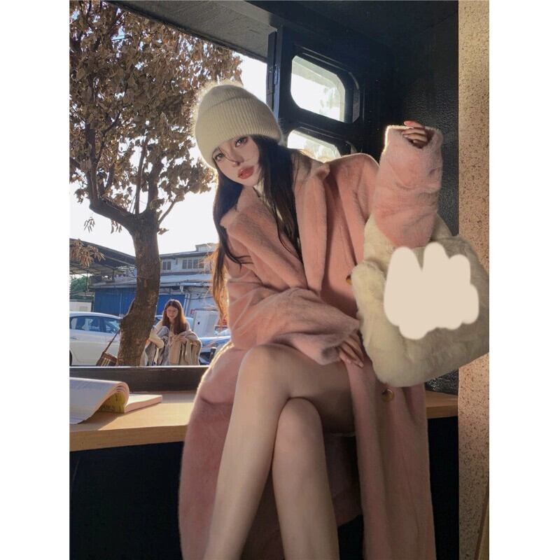 フレンチスタイルの高級ピンクコートヘップバーンスタイルルーズミッドレングスの毛皮のコートの女性 2023 新作秋冬 オータム 秋物 ウィンター 冬物 nana82188482075 | modepoisson
