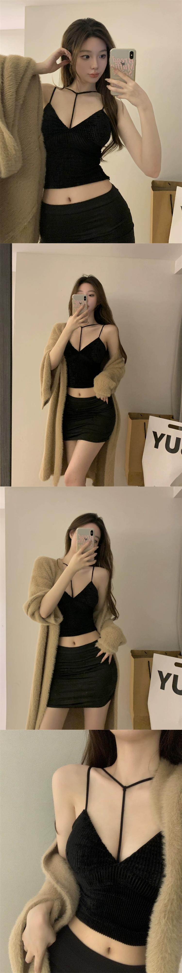 秋と冬の胸パッドと小さなサスペンダーの女性の純粋な欲望スタイルのホルターネック。セクシーなネクタイはボトムのシャツとノースリーブのトップスのアウターを着用します。 オータム 秋物 ウィンター 冬物 nana35537826589 | modepoisson