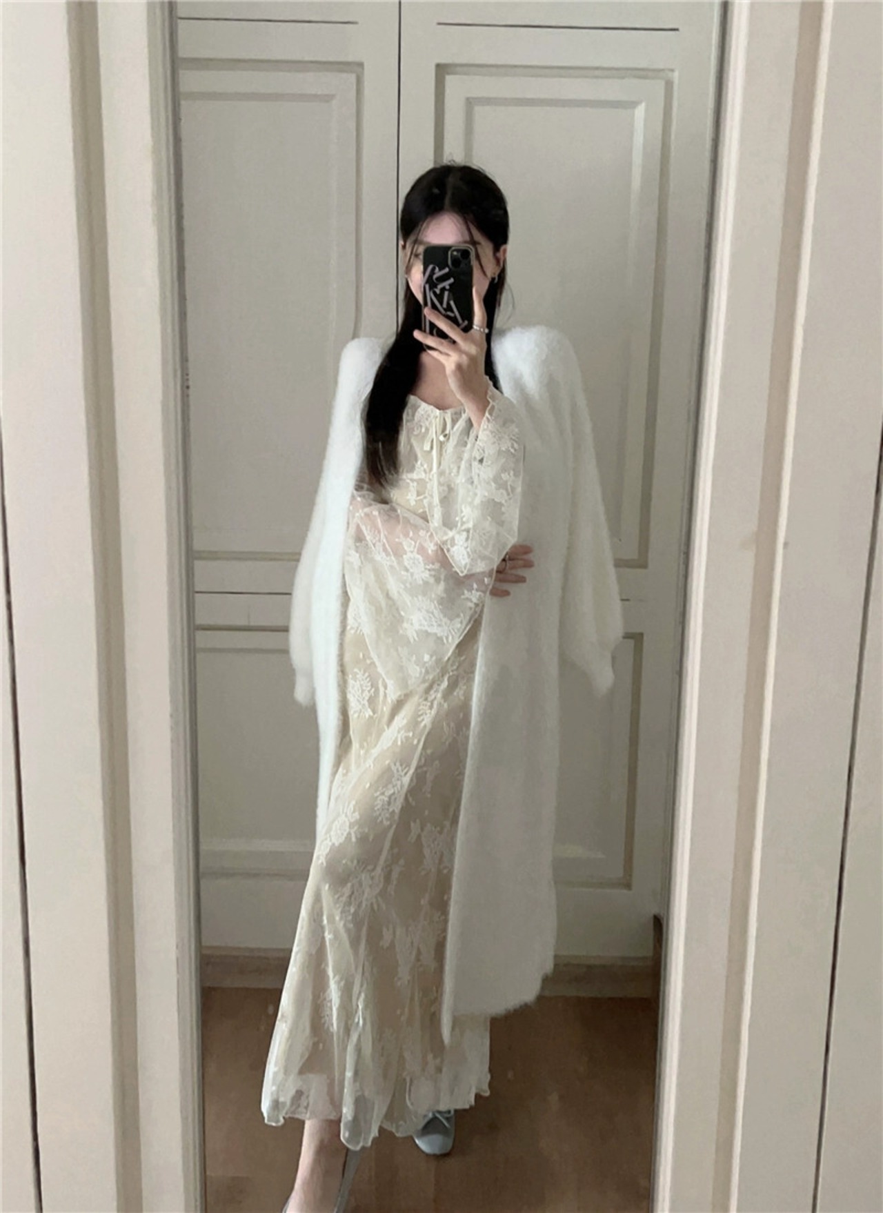 ニットレースドレス女性のウエスト痩身フィッシュテールロングスカート秋と冬のフレンチボトニングハイエンドスカート オータム 秋物 ウィンター 冬物 nana47932587519 | modepoisson