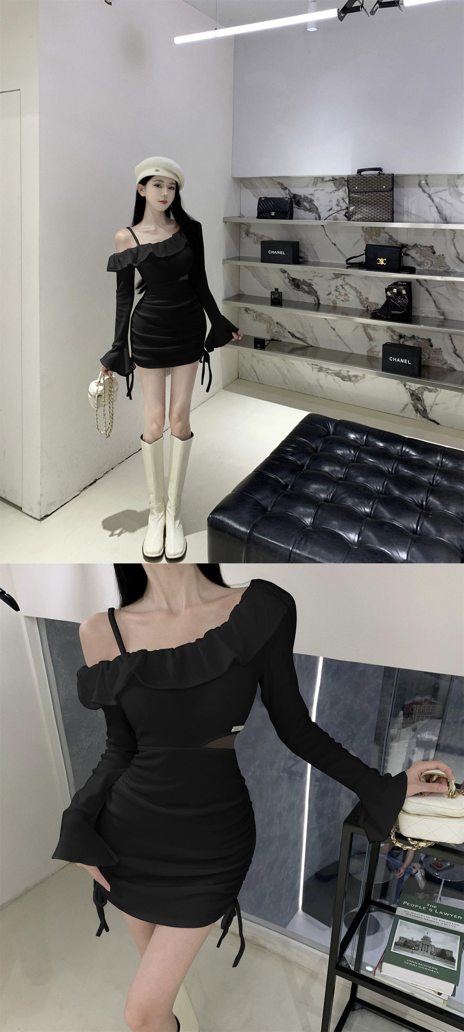ウエストを締める純粋な欲望ヒップハグドレス女性秋と冬の新しいセクシーなスリムフィット中空フリル白いスカート ホワイト オータム 秋物 ウィンター 冬物 ピュア nana51621710657 | modepoisson