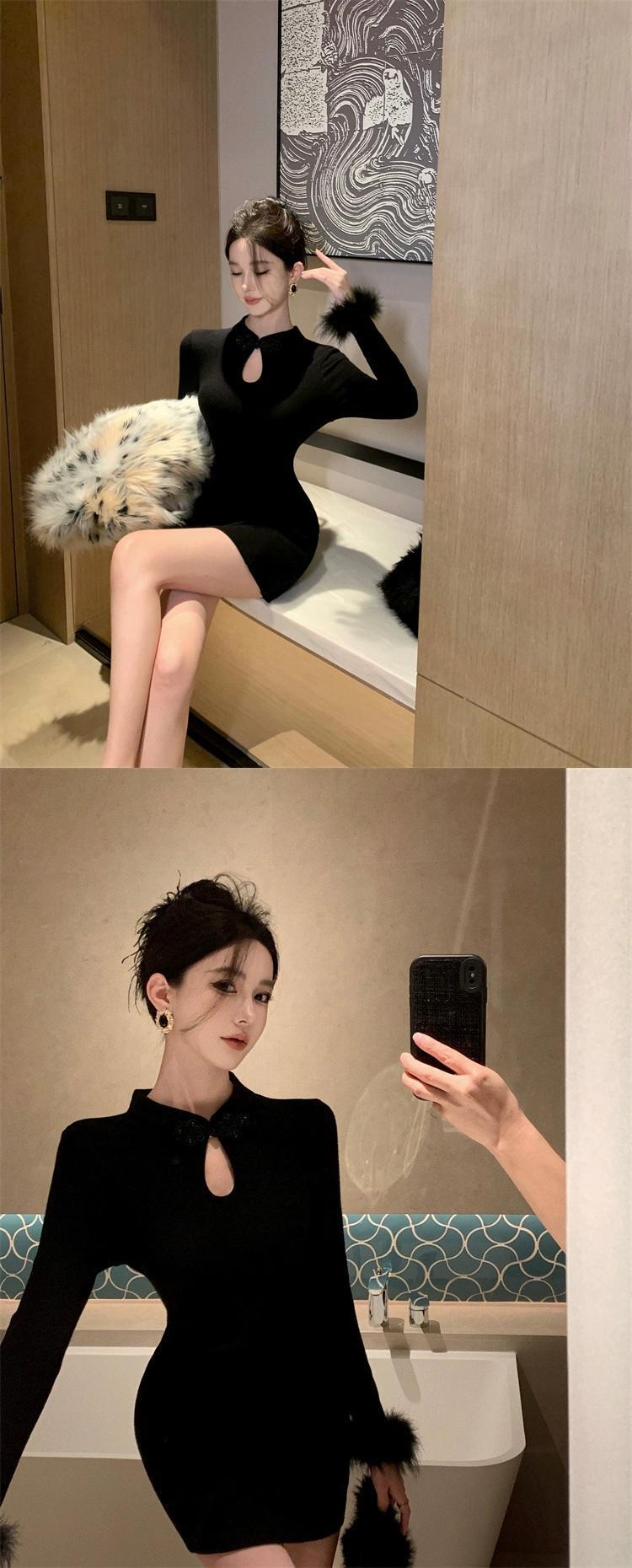 フレンチスタイルの改良されたチャイナドレススカートとスリムヒップカバードレス女性の秋と冬の2023新しいボトリングスカート オータム 秋物 ウィンター 冬物 nana31682040268 | modepoisson