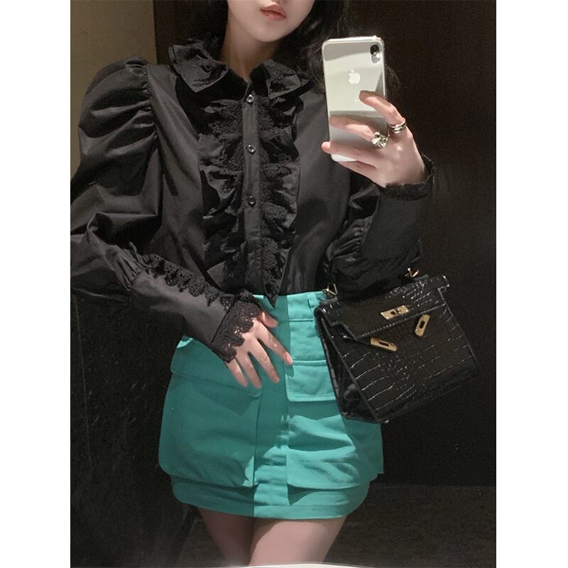 長袖シャツ レディース レトロ ホワイト デザイン ニッチ トップ 秋冬 フレンチ レース パッチワーク シャツ ロング オータム 秋物 ウィンター 冬物 nana71890795124 | modepoisson