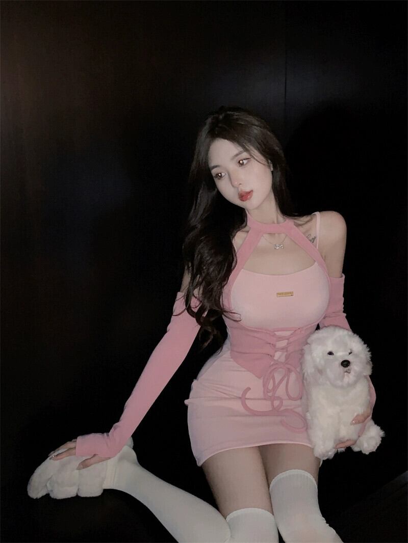 ホット長袖ホルタードレス女性の秋 2023 新しい純粋な欲望スタイルスリム痩身ウエストカバーヒップショートスカート ロング オータム 秋物 ピュア nana70265663787 | modepoisson