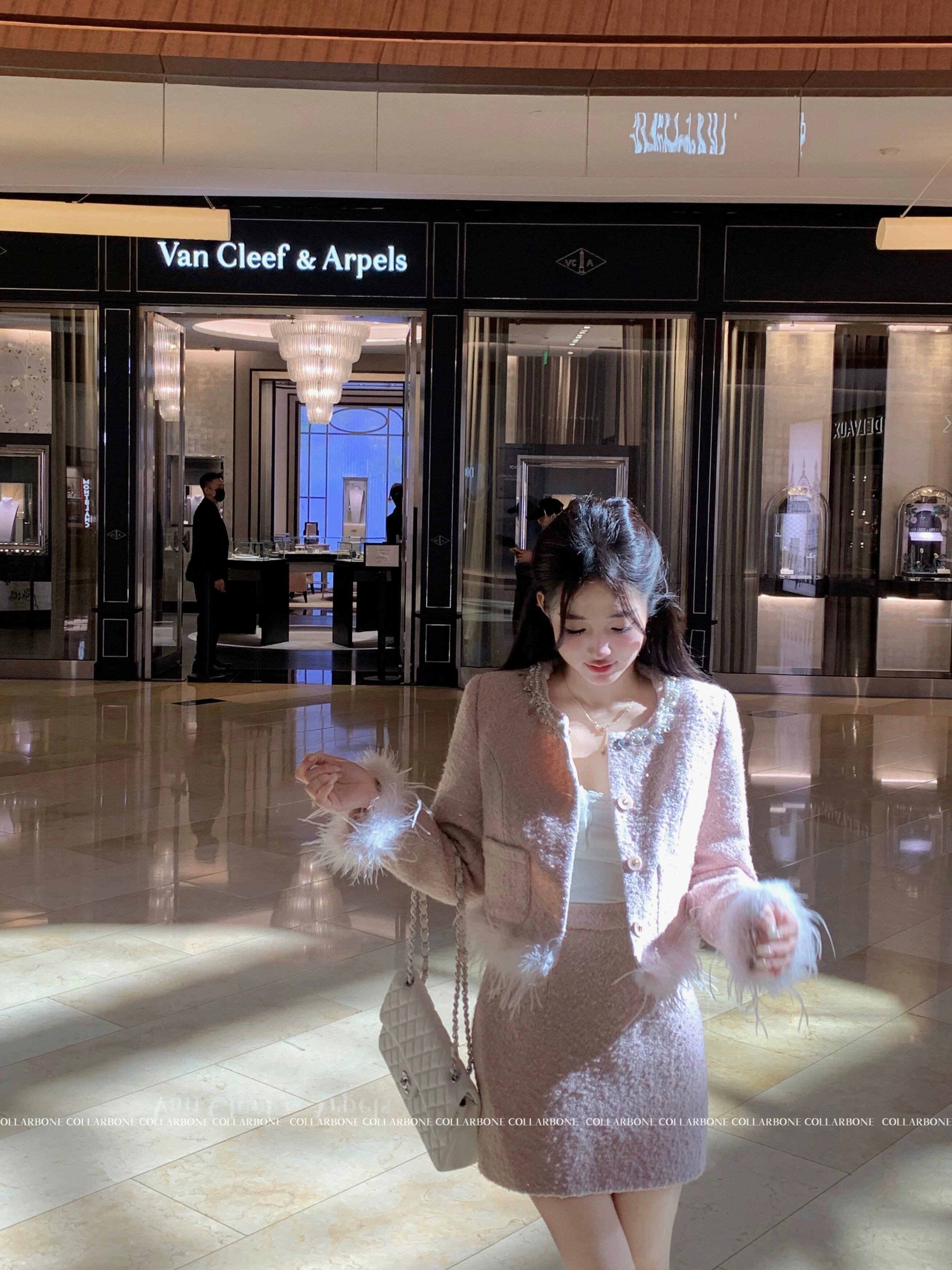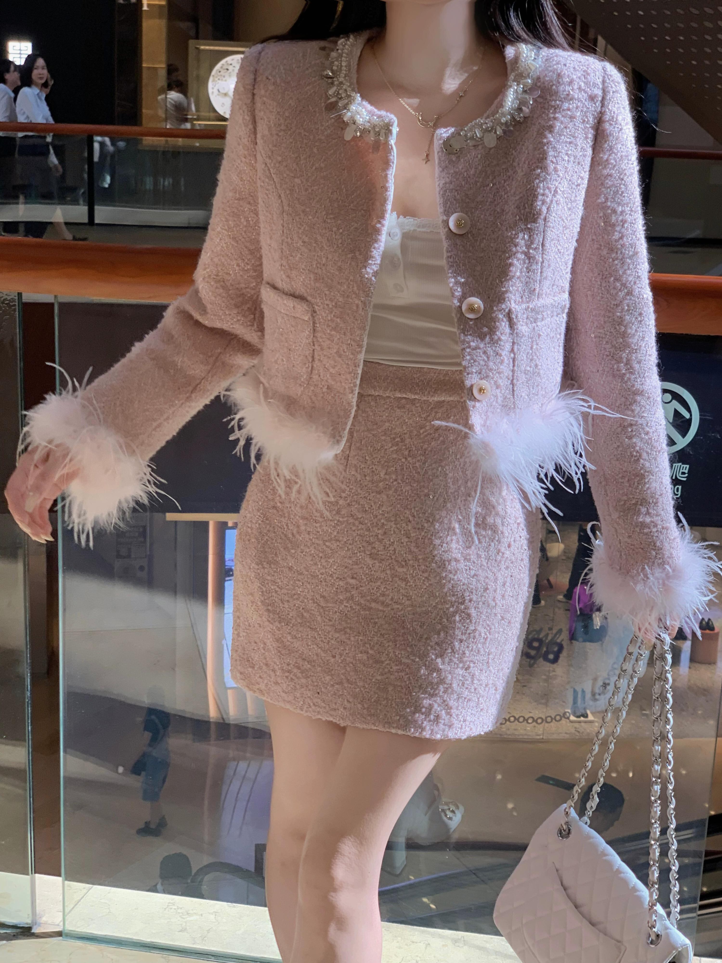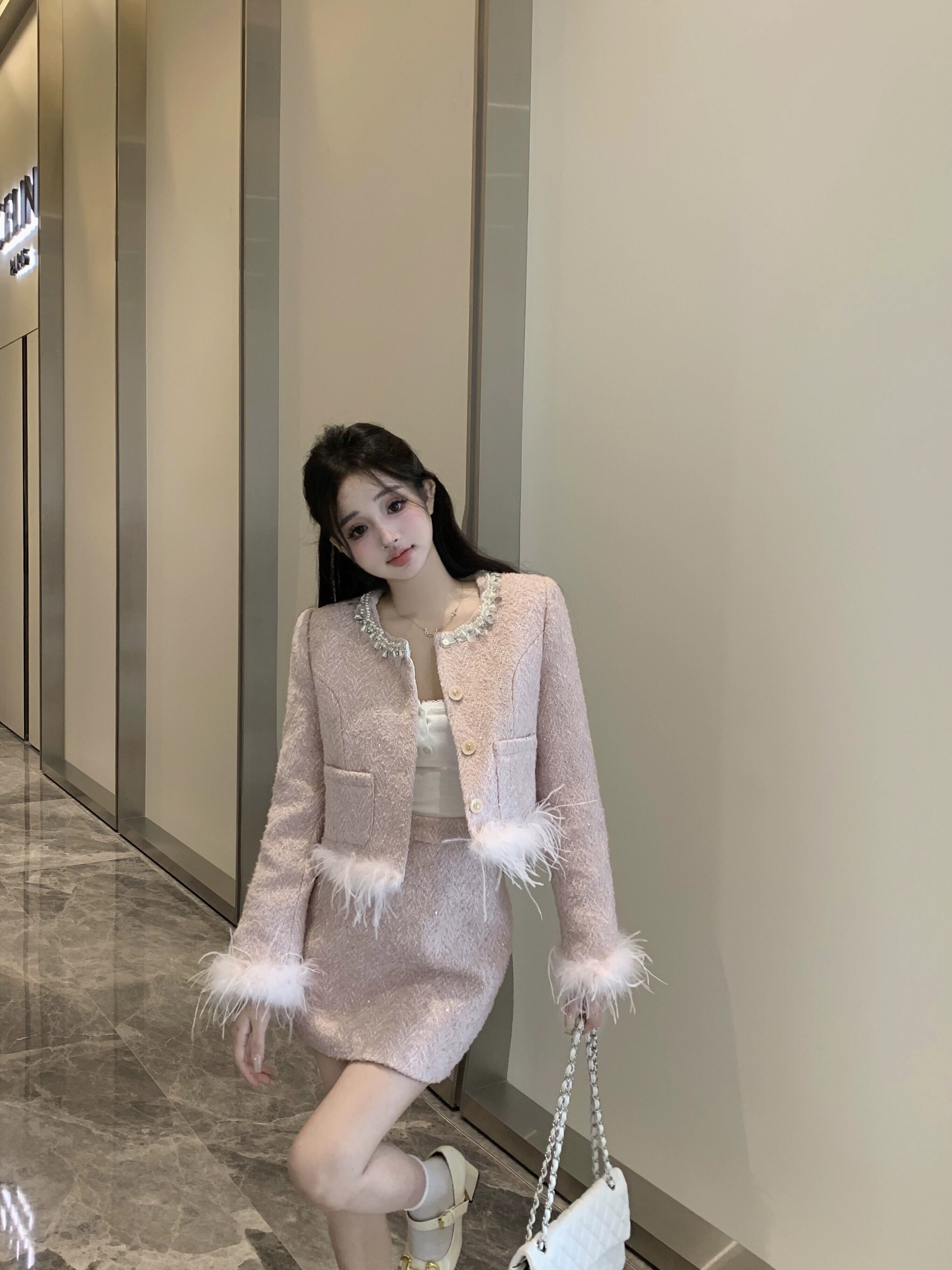 秋冬の小さな香りのスーツの女性、重工業の気質のジャケット、半丈の短いスカート、裕福な娘の高級2点セット ショート オータム 秋物 ウィンター 冬物 nana31712164806 | modepoisson