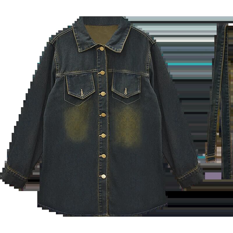 ウエストデザインのミッドレングスデニムシャツショートスカート付きの秋冬の小さなスリムな長袖ドレスの女性 ロング オータム 秋物 ウィンター 冬物 nana89961305403 | modepoisson