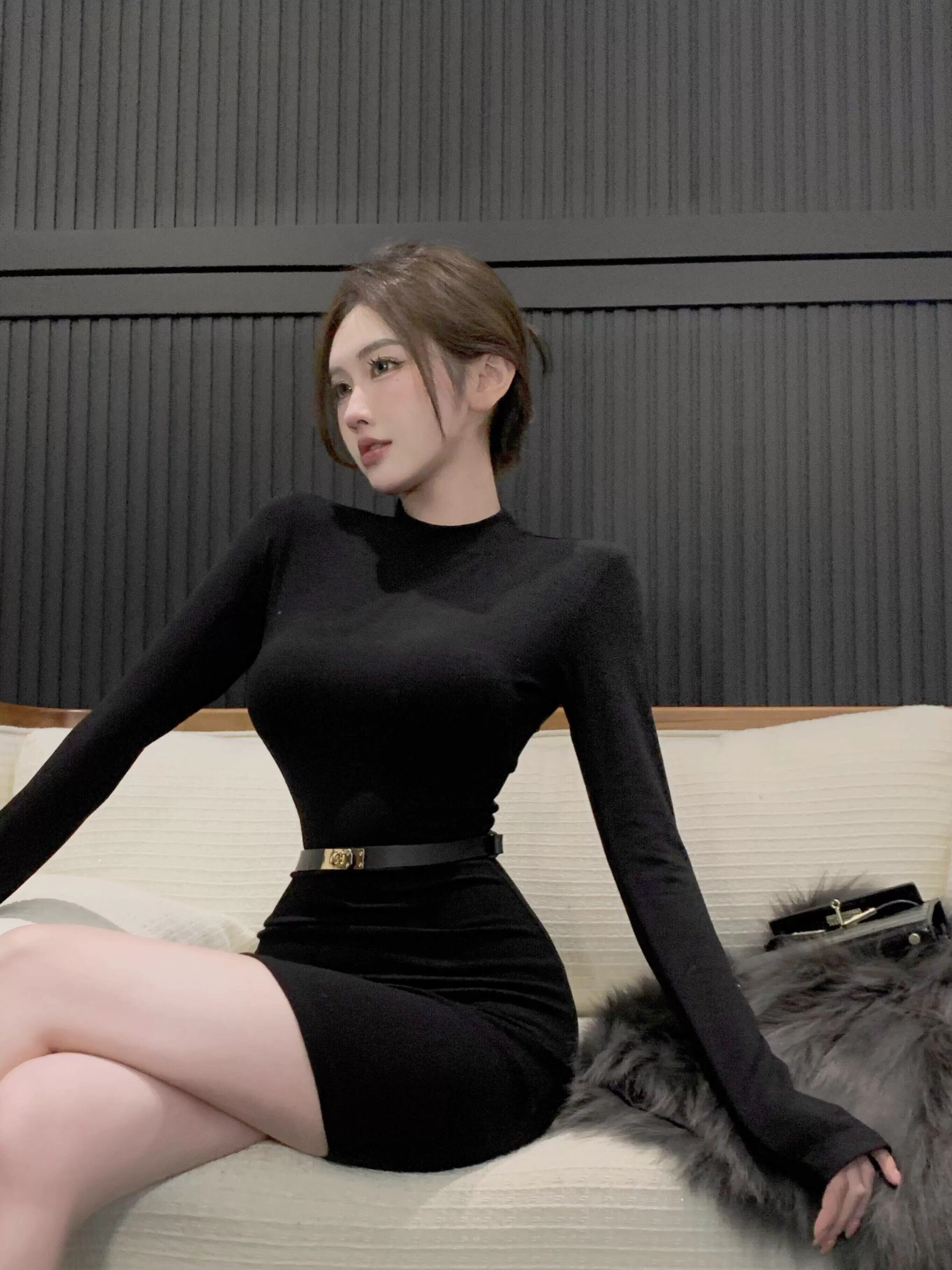 ホットボトムドレス女性の秋と冬の新しいタイトフィットインナーラウンドネック長袖セクシーなヒップカバーショートスカート ロング オータム 秋物 ウィンター 冬物 Oネック nana44179439129 | modepoisson