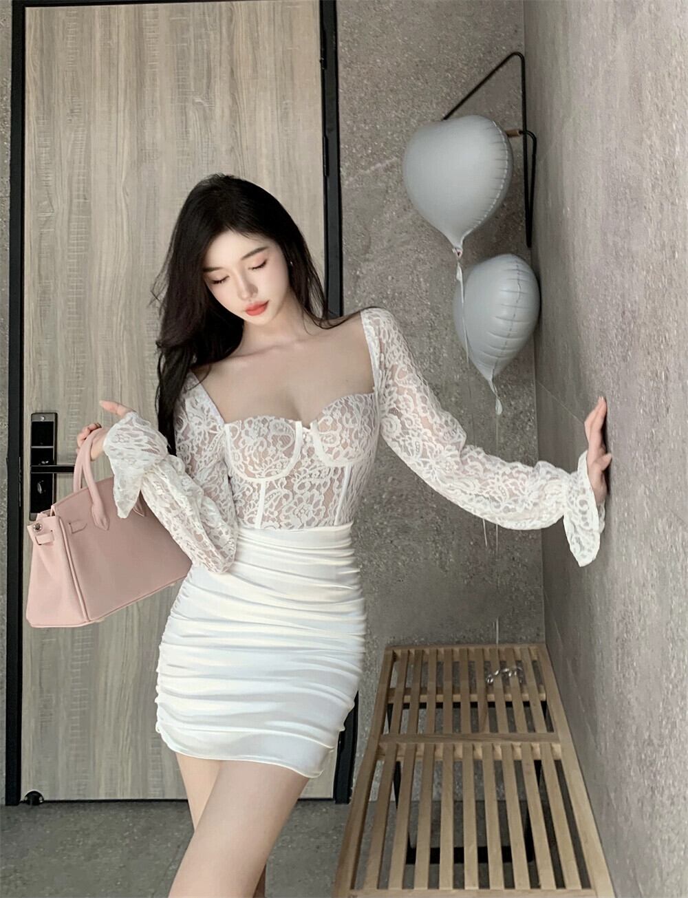 女性のレースのドレスの女性の秋と冬のフレンチボトムスリムでセクシーなヒップハグスカート長袖タイトショートスカート ロング オータム 秋物 ウィンター 冬物 nana56286289824 | modepoisson