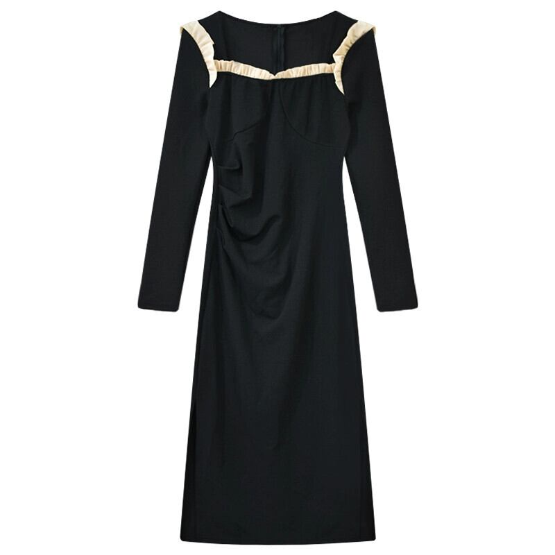 フレンチスタイルのヒップハグドレス女性の秋と冬の新しい長袖底黒スカートウエストハイエンドロングスカート ブラック オータム 秋物 ウィンター 冬物 nana10756523480 | modepoisson