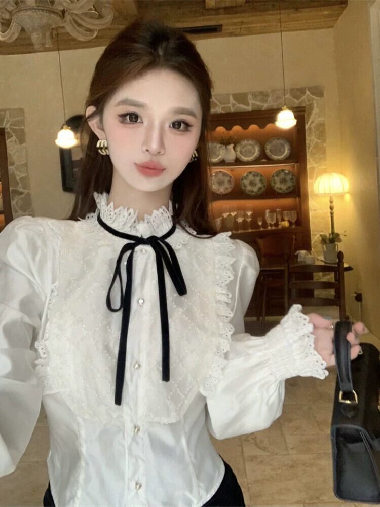 フレンチシックな頑丈なシャツスリミングルーズ長袖シャツデザインニッチボトリングシャツトップス女性の秋と冬 ロング オータム 秋物 ウィンター 冬物 nana41741272419 | modepoisson