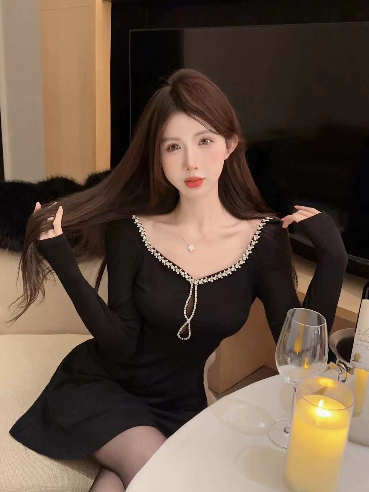 -エンドドレス長袖ウエストAラインスカートニッチブラックセクシーな中空秋と冬のインナーリトルブラックスカートレディース ロング オータム 秋物 ウィンター 冬物 nana26764789303 | modepoisson