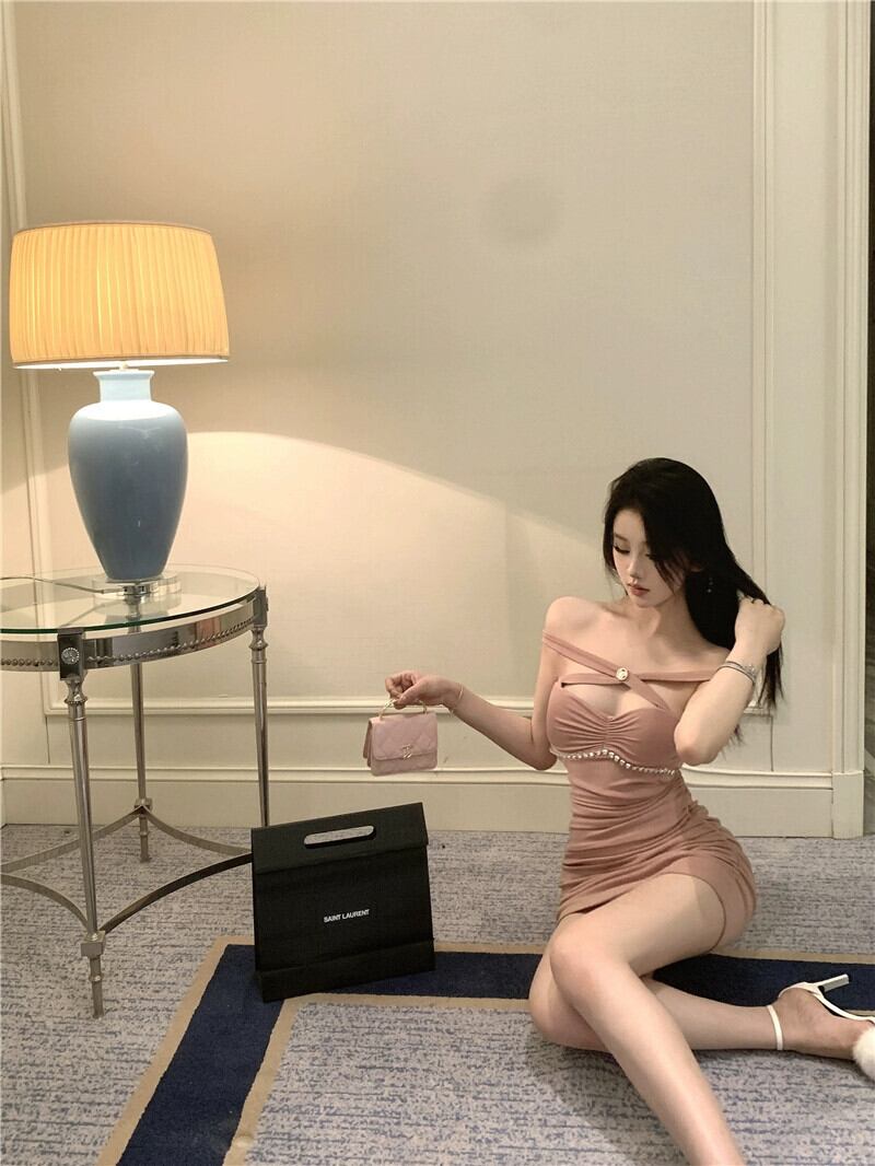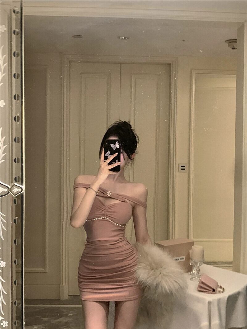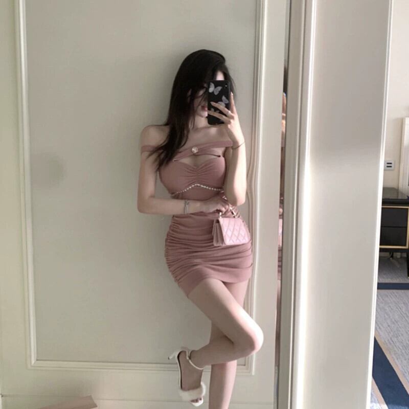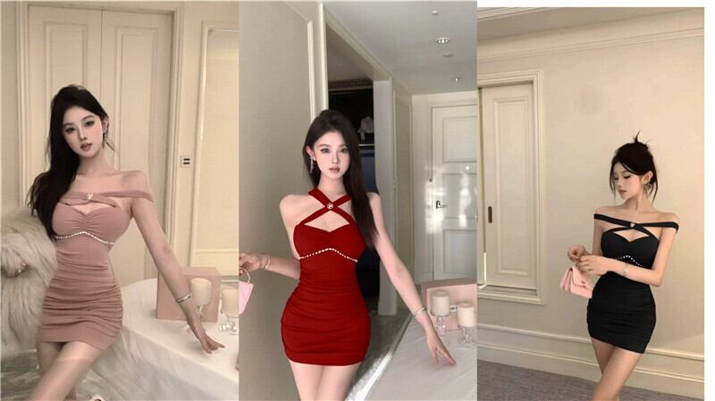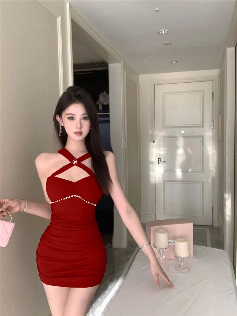 純粋な欲望スタイルホルターネックサスペンダードレスレッド女性の秋と冬のインナーレイヤーセクシーなプリーツスリミングボトミングショートスカート オータム 秋物 ウィンター 冬物 nana10942848340 | modepoisson