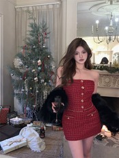 秋冬スーツレディース、毛皮のコート、社交界の小さな香り風ツイードブラジャー、ヒップハーフスカート、3点セット オータム 秋物 ウィンター 冬物 nana48117739199 | modepoisson