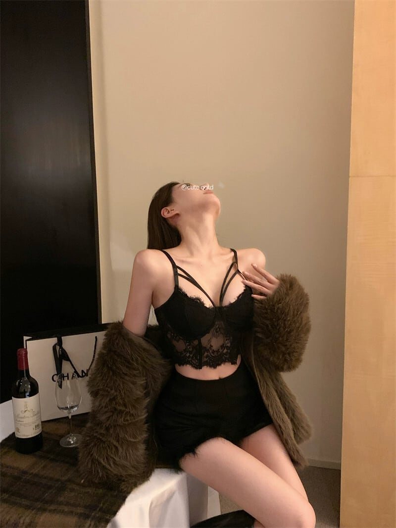 セクシーなレースのホルタートップと小さなベスト付き秋と冬デザインの黒の短いノースリーブトップ女性が外で着用します ショート ブラック 半袖 ハーフスリーブ オータム 秋物 ウィンター 冬物 nana10704428708 | modepoisson