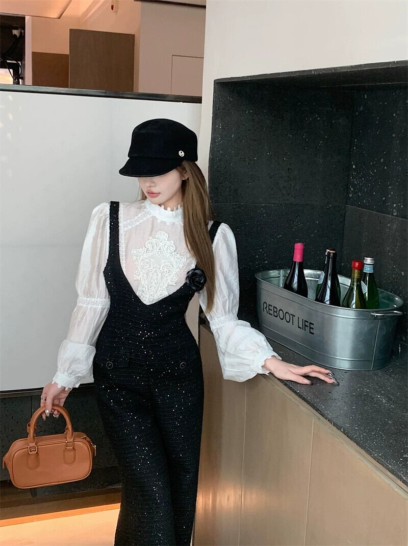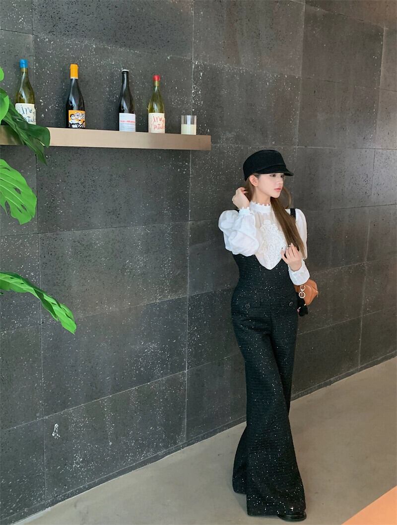 フレアオーバーオールデザインカジュアルパンツ新しい甘いクールなスタイルのズボンの女性の秋と冬のファッションジャンプスーツワイドレッグパンツ レッド 大人ガーリー スウィート キュート オータム 秋物 ウィンター 冬物 ワイドパンツ nana68408179653 | modepoisson