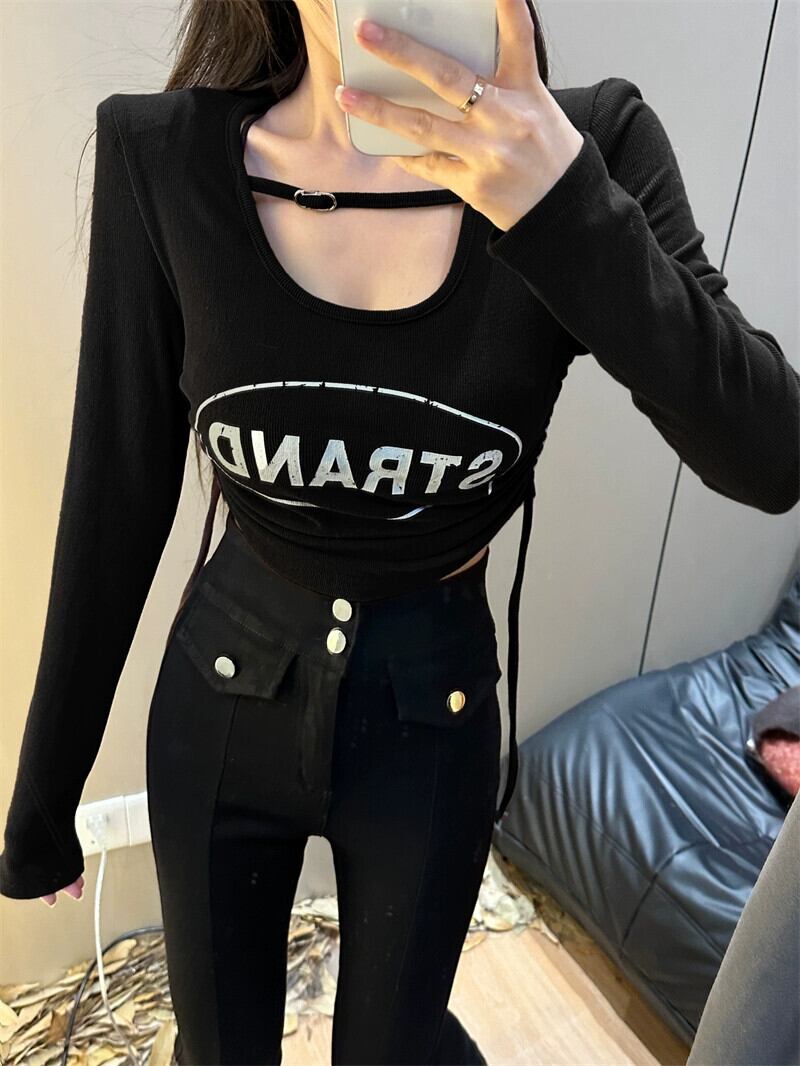 レタープリント長袖 Tシャツアメリカ人女性の秋と冬の新しいスタイルの白いボトムシャツショートトップ甘い ロング ホワイト 大人ガーリー スウィート キュート カジュアル オータム 秋物 ウィンター 冬物 nana17367615232 | modepoisson