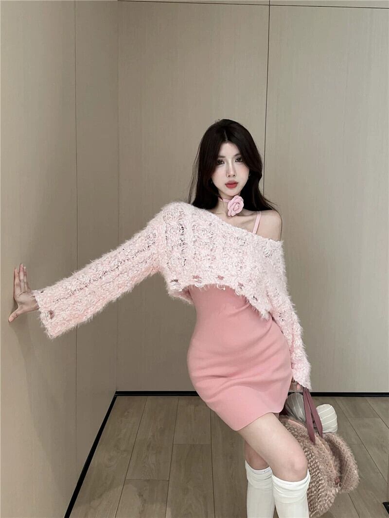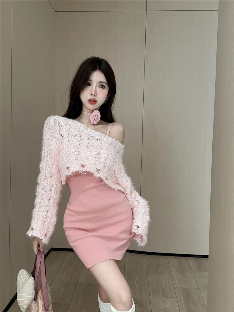 甘くてスパイシーな純粋な欲望長袖ショートセータースリムフィットサスペンダードレスニットツーピースセットレディース秋冬2024新しいスタイル ロング 大人ガーリー スウィート キュート カジュアル オータム 秋物 ウィンター 冬物 ピュア nana37440947711 | modepoisson
