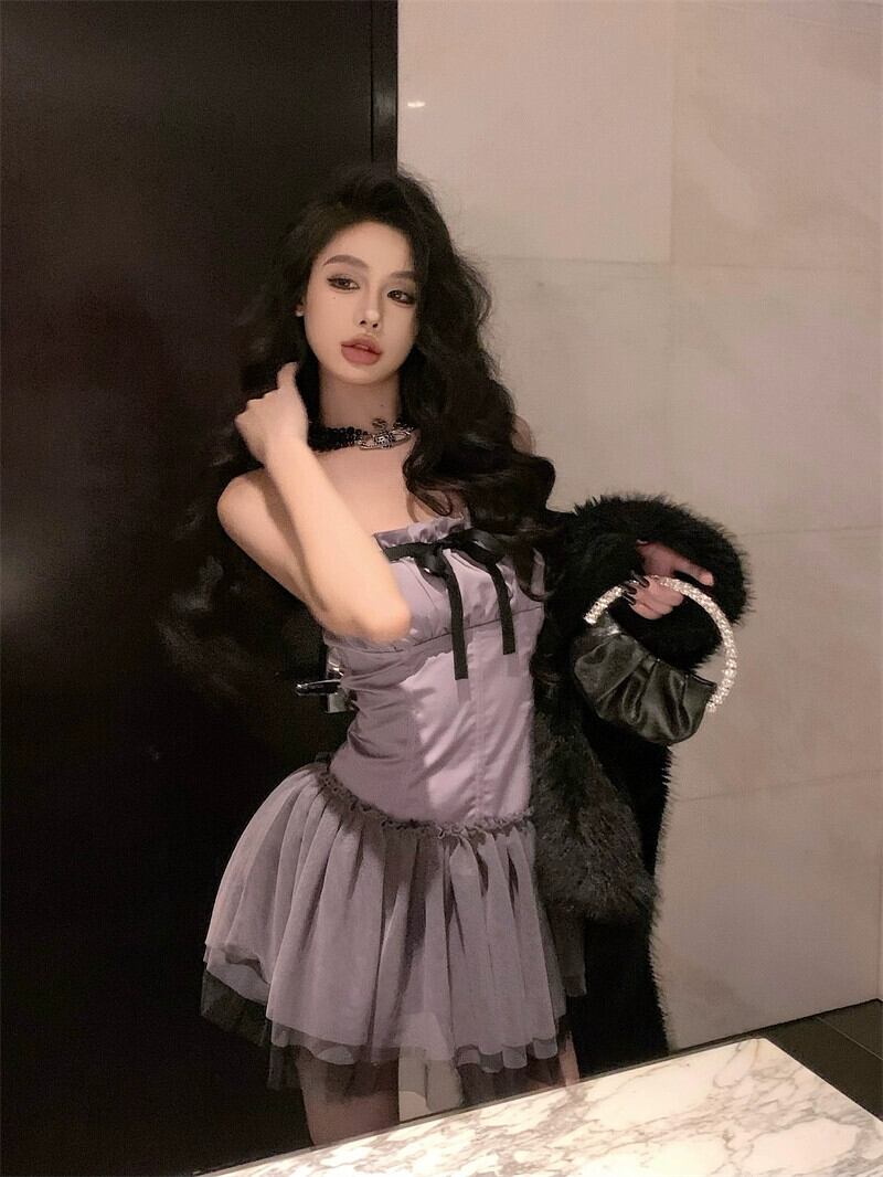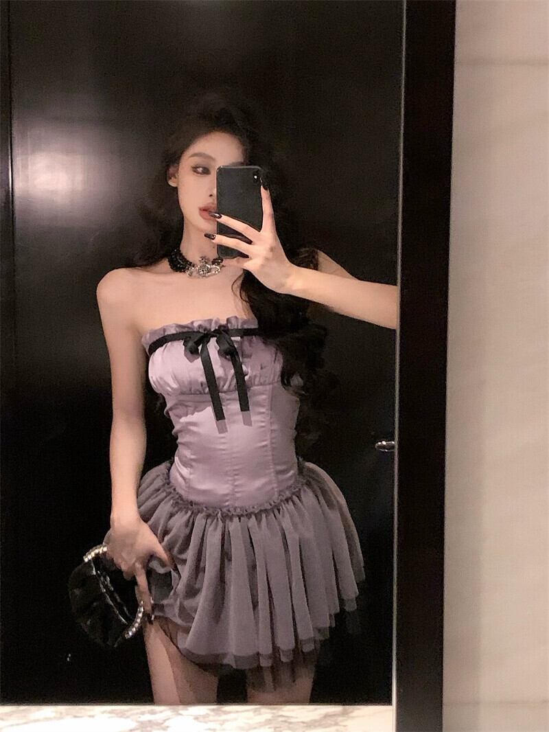 気質ドレス、ウエストAラインスカート、秋冬インナーウェア、新作チューブトップドレス、ふくらみのあるショートスカートの小柄な女性 オータム 秋物 ウィンター 冬物 nana43748051676 | modepoisson