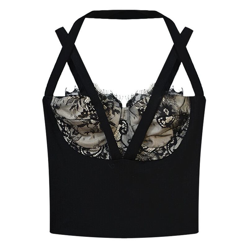 セクシーなスプライシングレースクロスキャミソールインナーレイヤー女性の秋と冬の純粋な欲望黒底シャツノースリーブトップ ブラック オータム 秋物 ウィンター 冬物 ピュア nana86366705951 | modepoisson