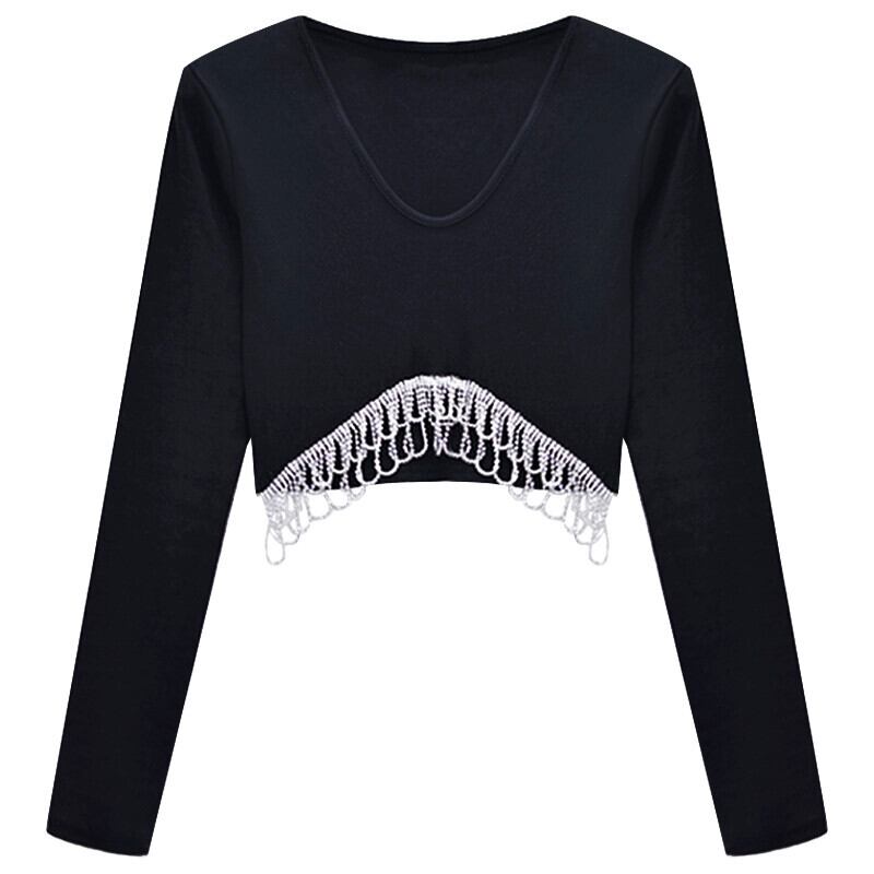 重工業チェーンテル V ネック長袖 Tシャツ女性のテーラードデザインニッチショートトップ秋と冬のボトリングシャツ ロング レッド オータム 秋物 ウィンター 冬物 Vネック nana12639765444 | modepoisson