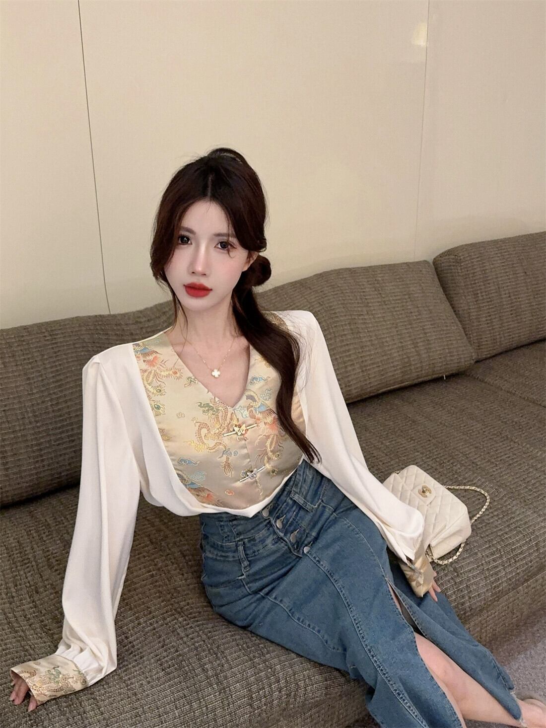色:コート,デニムスカート