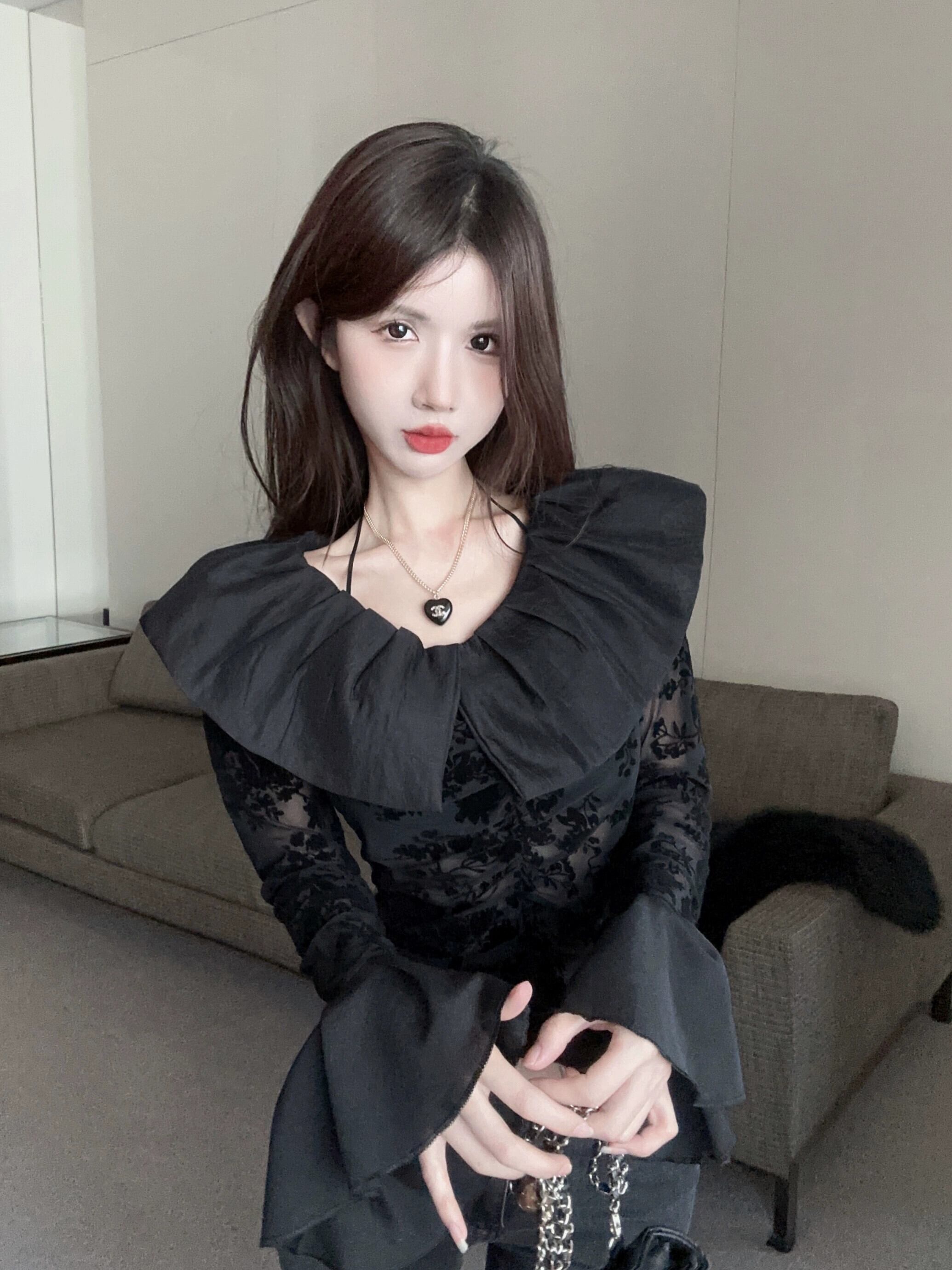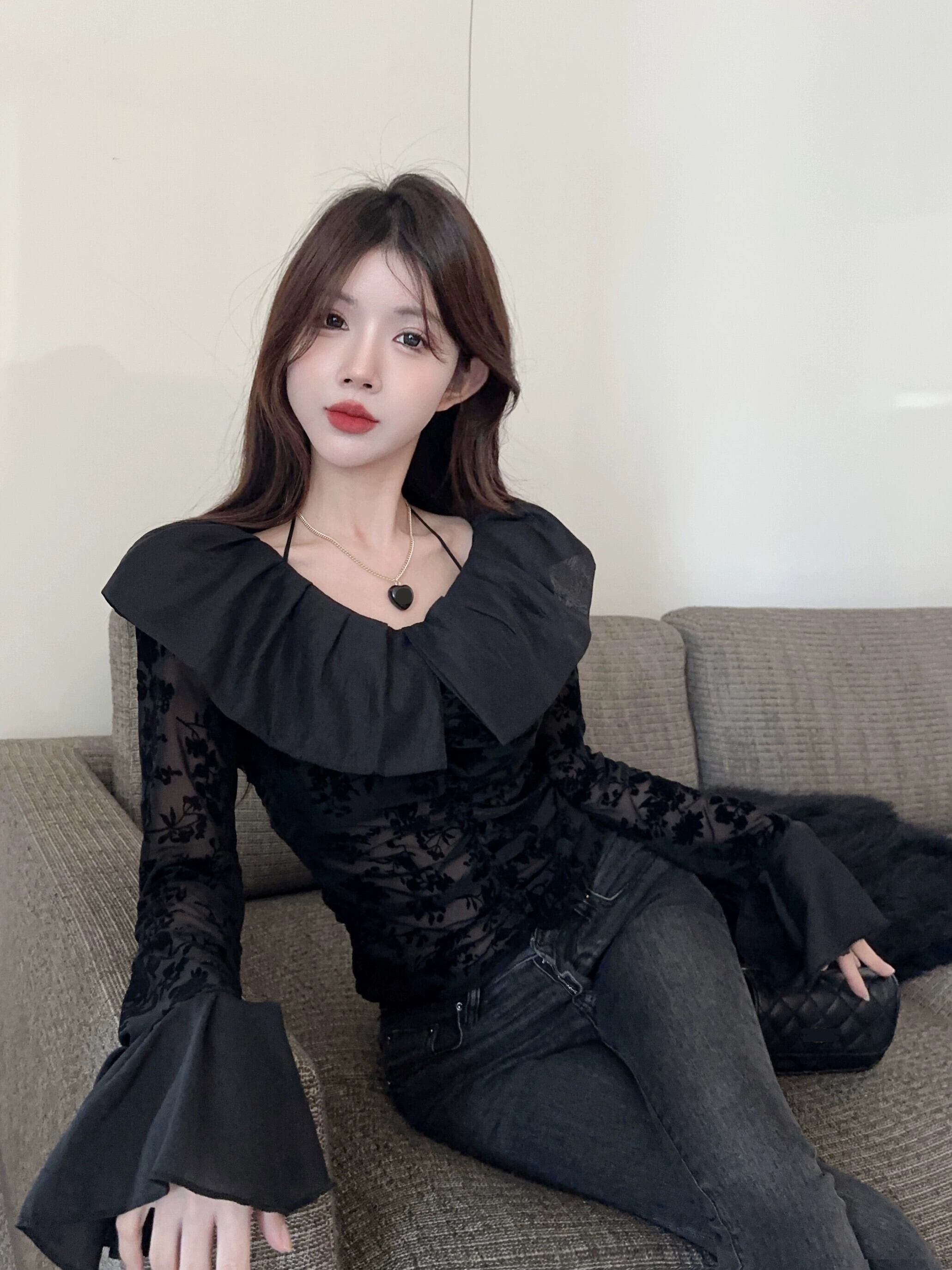 フリル中空長袖シャツの女性の秋と冬の新しいスタイルのフレンチデザインニッチスリムシャツショートトップ ロング オータム 秋物 ウィンター 冬物 nana39115675879 | modepoisson