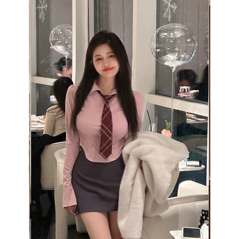 ホットスーツ レディース 秋冬 シャツ トップス JK ユニム カレッジスタイル スリム ハーフ丈 ショートスカート おしゃれ 2点セット オータム 秋物 ウィンター 冬物 nana4610898352 | modepoisson