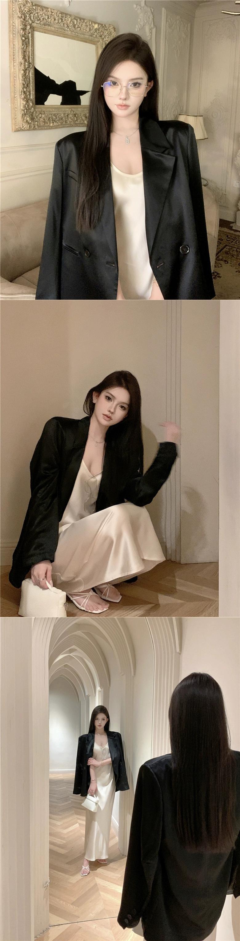 色:ブラウンサスペンダードレス,シャンパンライスサスペンダースカート,ブラックサスペンダースカート,肩パッド付きの黒いジャケット