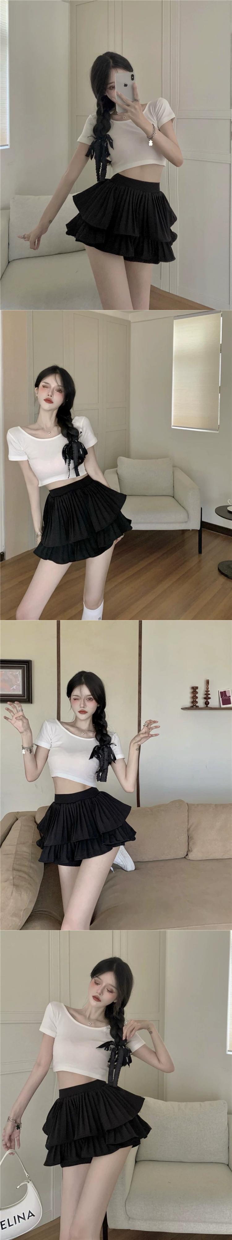 -ウエストスリムスカート女性の夏の2024新しい白いプリーツケーキスカート小さなAラインショートパンツスカート ホワイト サマー 夏物 ショーツ ブルマー nana94934913103 | modepoisson