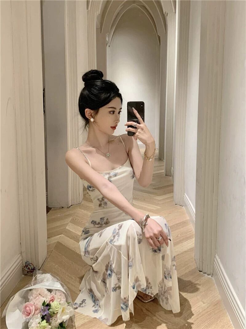 ヨーロッパとアメリカンスタイルの婦人服 2024 夏の新セクシーな V ネックファッションフラワープリントウエスト痩身サスペンダードレス サマー 夏物 Vネック フラワーデザイン ヨーロピアン nana53048390869 | modepoisson