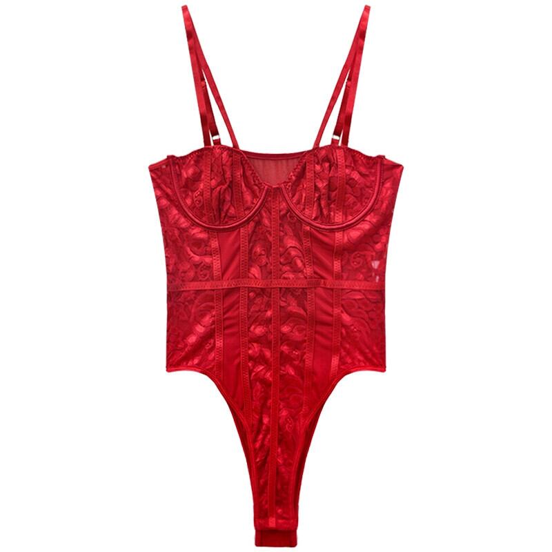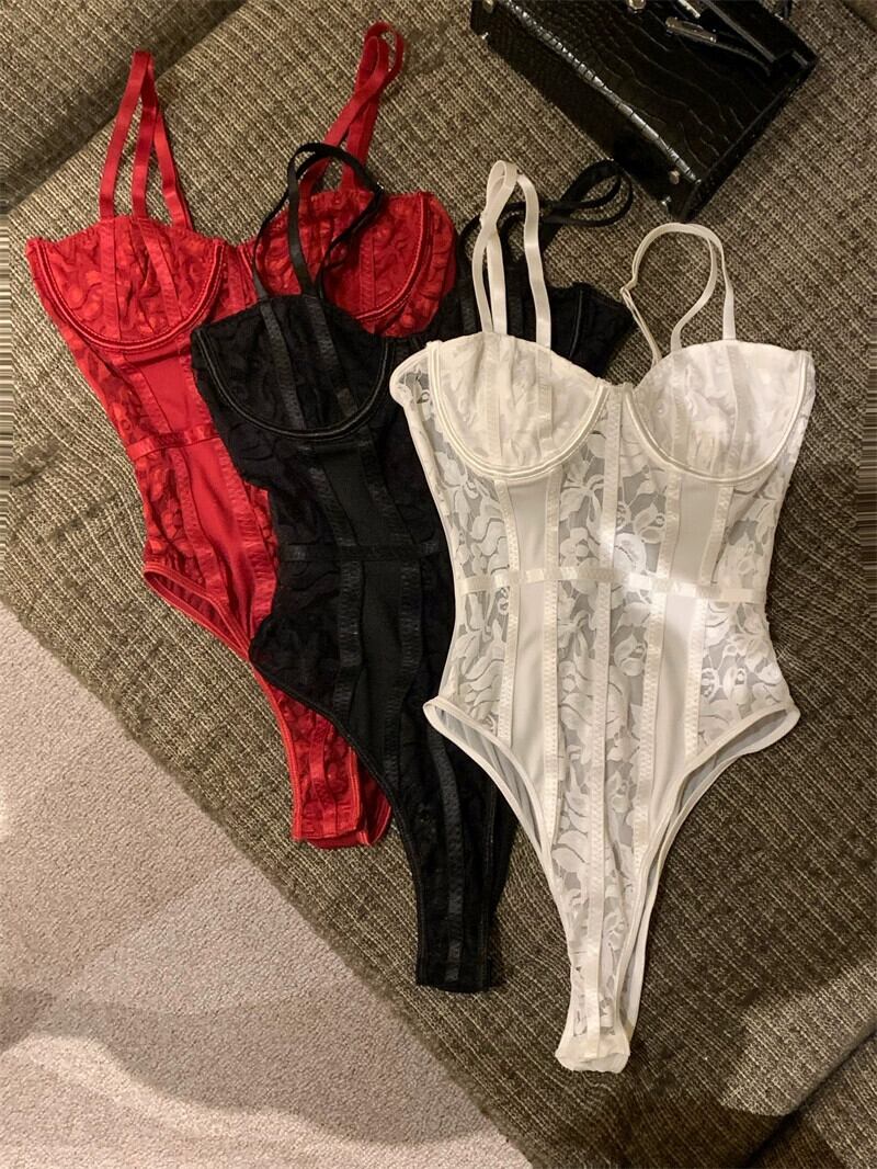Pure Desire ホワイトフィッシュボーンレースキャミソールジャンプスーツ女性の秋と冬のセクシーなボトリングトップスアウター オータム 秋物 ウィンター 冬物 nana6931058946 | modepoisson