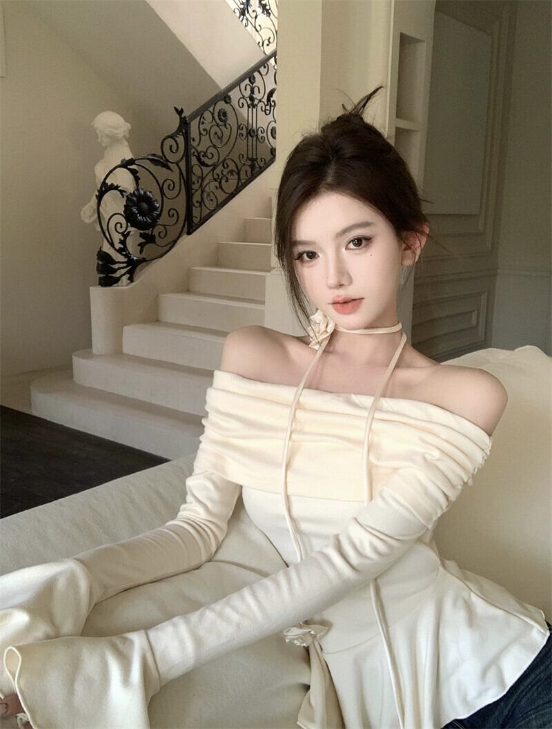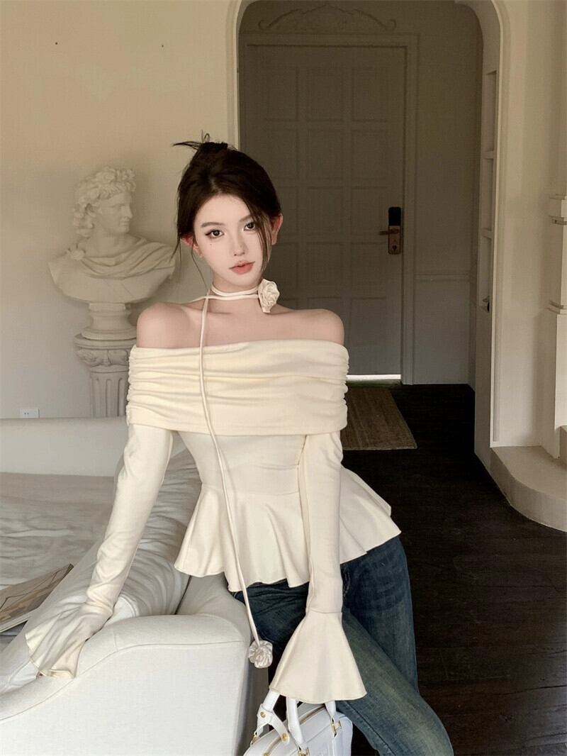 フランス長袖スリム Tシャツ春の新作甘くてスパイシーな痩身ワンショルダートップデザインニッチボトリングシャツ女性 ロング 大人ガーリー スウィート キュート カジュアル スプリング 春物 nana37793564109 | modepoisson
