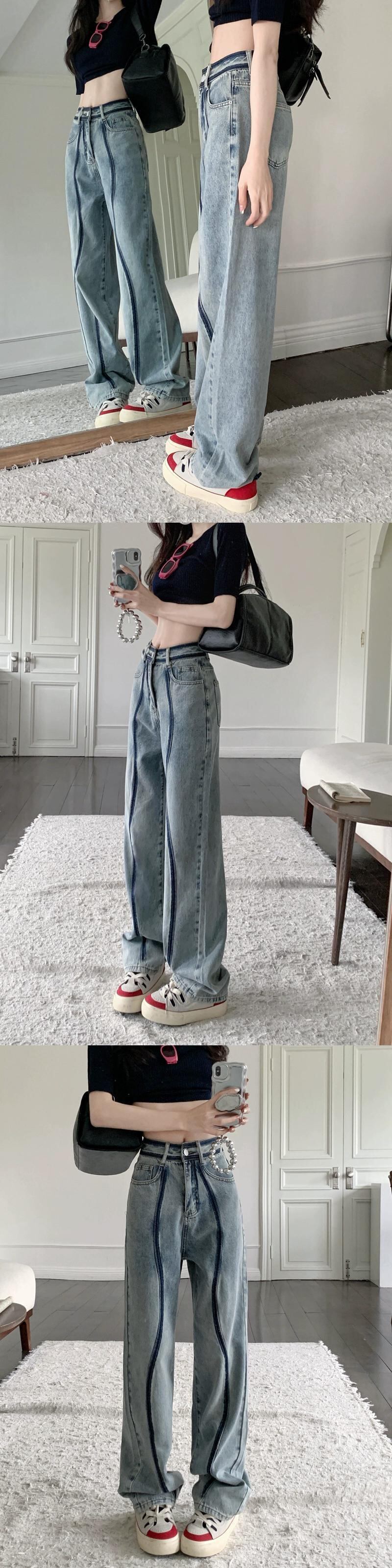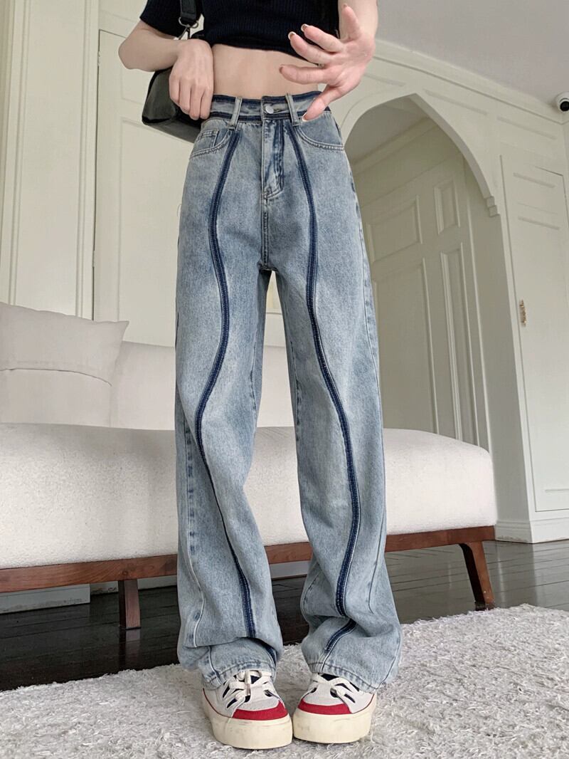 香港スタイル ルーズ ワイドレッグ ジーンズ レディース 有能で多用途 2024 ウォッシュド ストレート フロアモップ ロング パンツ ワイドパンツ nana59886452890 | modepoisson