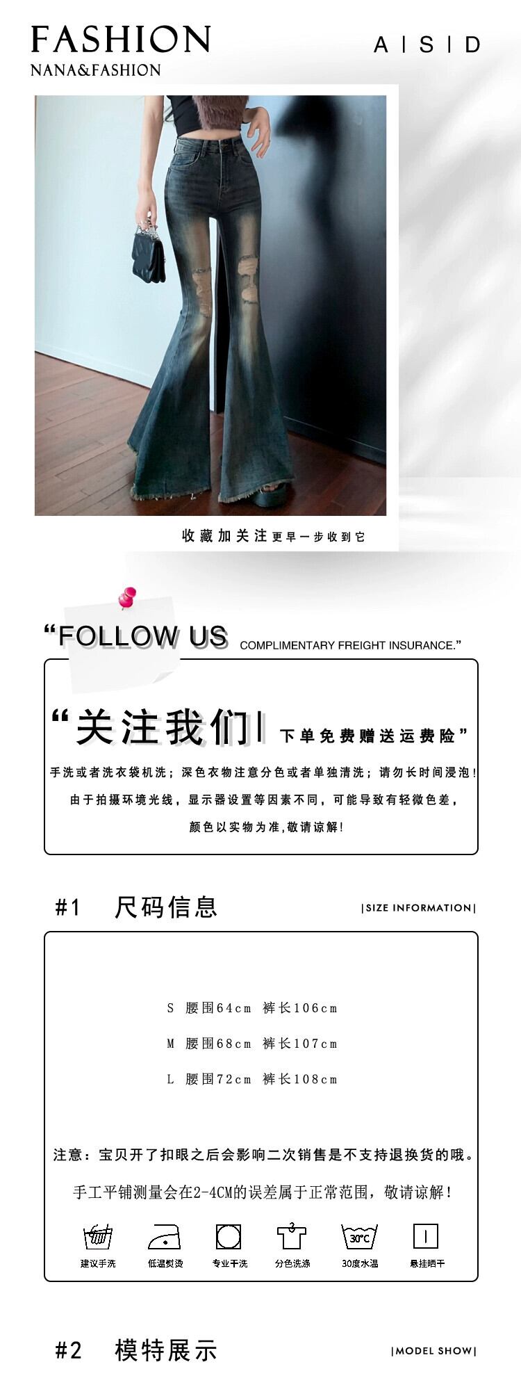 アメリカンレトロリップドジーンズ女性春 2024 新しいストレートタイトな弾性ハイウエストワイドレッグフレアパンツ ハイウェスト レッド エラスティック 伸縮 スプリング 春物 ワイドパンツ nana8347592738 | modepoisson