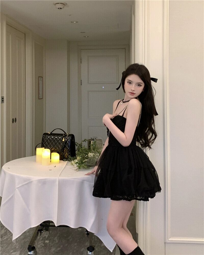 黒のウエストラインサスペンダードレスの女性の春と夏の新しいスリムショートスカート刺繍メッシュプチチュチュスカート レッド ブラック スプリング 春物 サマー 夏物 パニエ ペチコート nana89519511784 | modepoisson