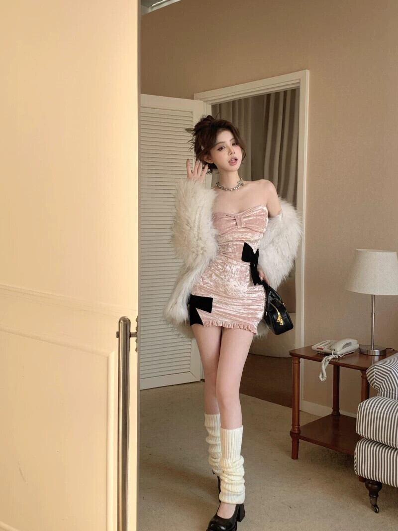 気質ドレス純粋な欲望チューブトップセクシーなベルベットスリムドレスショートスカート女性の秋と冬の新しいスタイル オータム 秋物 ウィンター 冬物 ピュア nana40828406661 | modepoisson