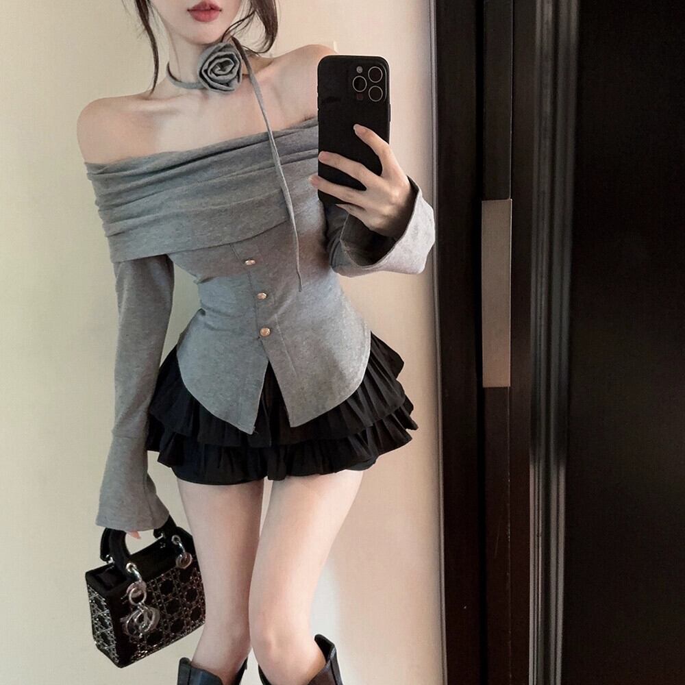 春先にぴったりなスリムフィットのワンショルダー長袖Tシャツ。フラワー柄のホルターネックのベルスリーブのボトリングシャツで、内側にスリムなトップスが付いています。 ロング スプリング 春物 フラワーデザイン nana4405649784 | modepoisson