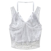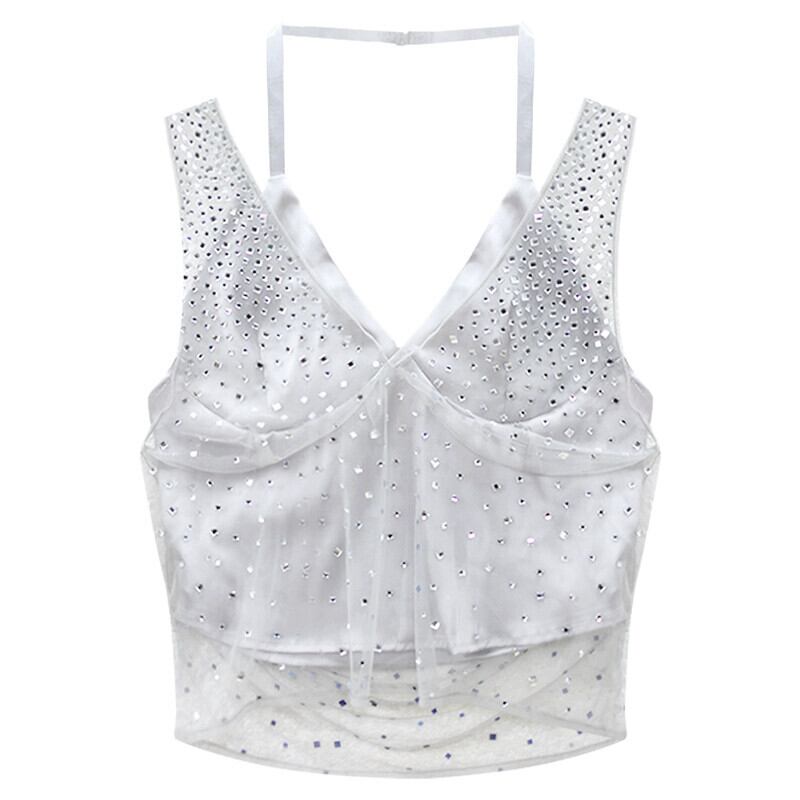 アメリカの純粋な欲望ネクタイスパンコール付きホルターネックキャミソールハイエンドインナーウェア甘くてスパイシーなニッチショートトップ女性が外で着る 大人ガーリー スウィート キュート カジュアル ピュア nana77620801029 | modepoisson