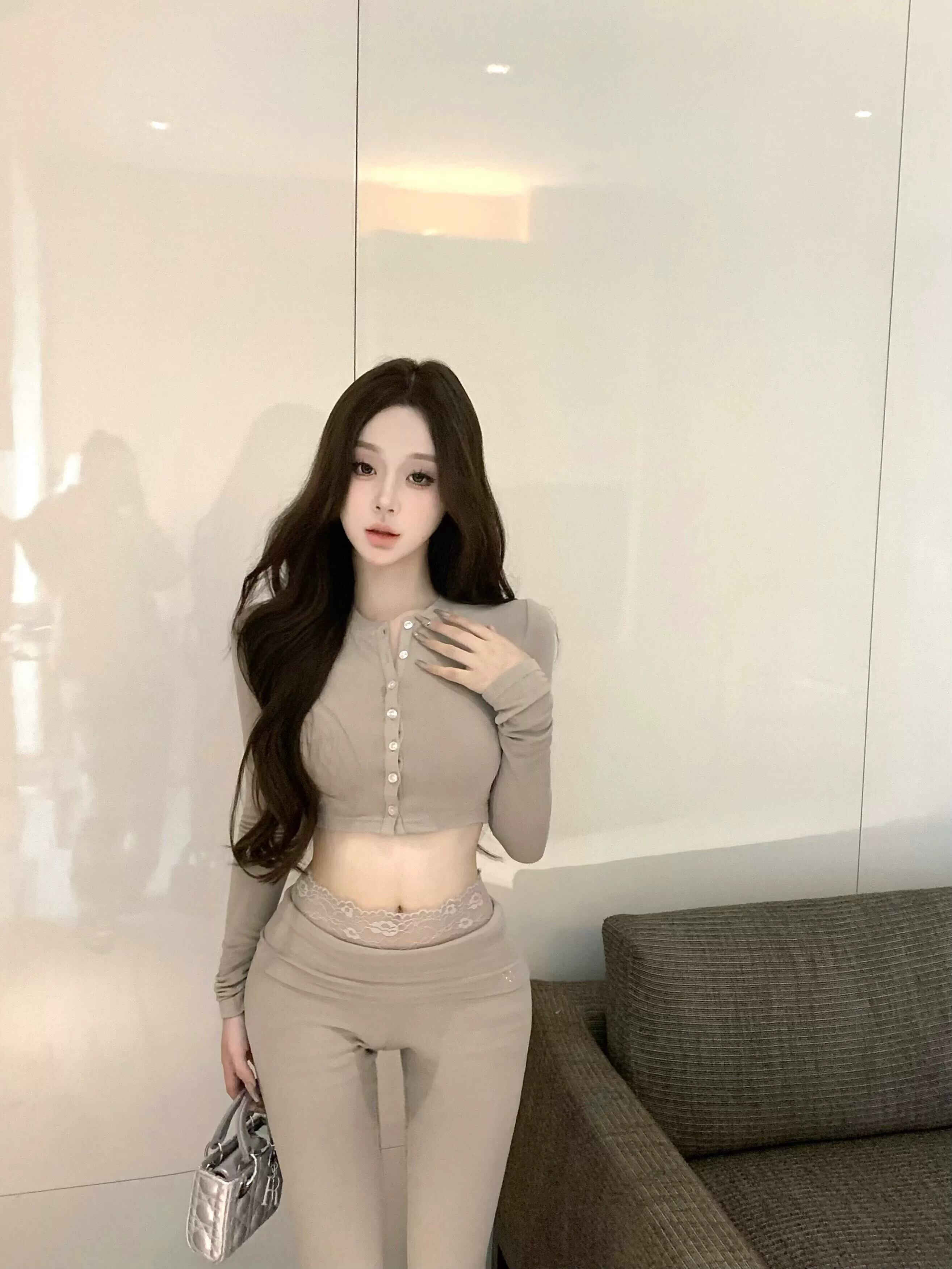 アメカジ怠惰なスタイルショート長袖 Tシャツ春スーツ気質スリムベルボトム 2 点セット女性 ロング カジュアル スプリング 春物 nana15479254548