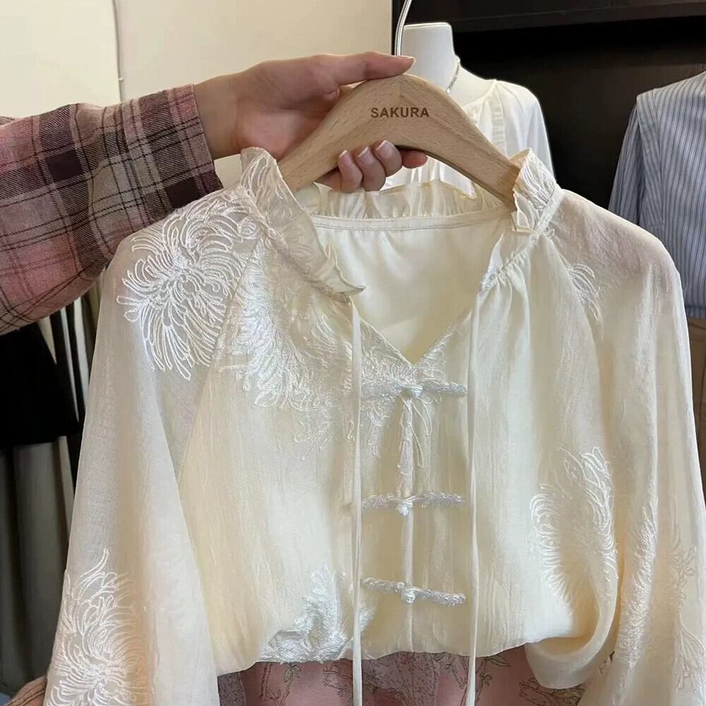 中国風刺繍日焼け防止シャツ女性の夏のスーツルーズトップ気質甘いハーフスカート 2 点セット レッド 大人ガーリー スウィート キュート カジュアル サマー 夏物 nana1534350386 | modepoisson