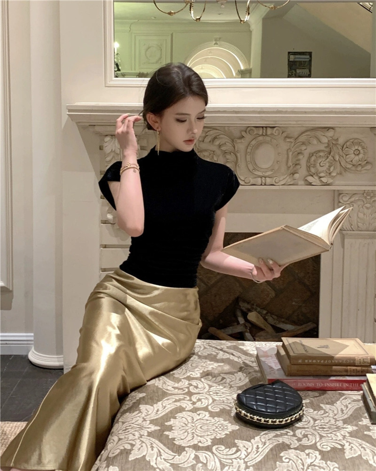 色:黒の長袖,ゴールドスカート,黒い半袖