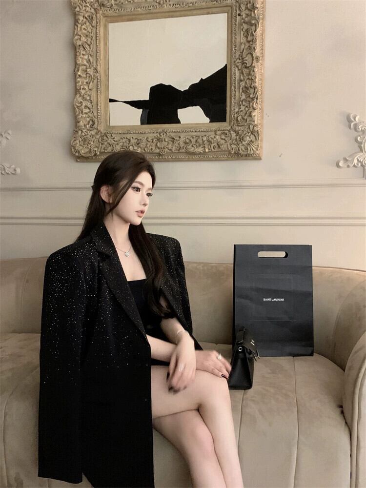 -最後と超見栄えの良いスーツジャケットの女性の春と秋の新しいスタイルの小さな黒の緩いカジュアルな気質のスーツトップ ブラック スプリング 春物 オータム 秋物 nana59967655938 | modepoisson