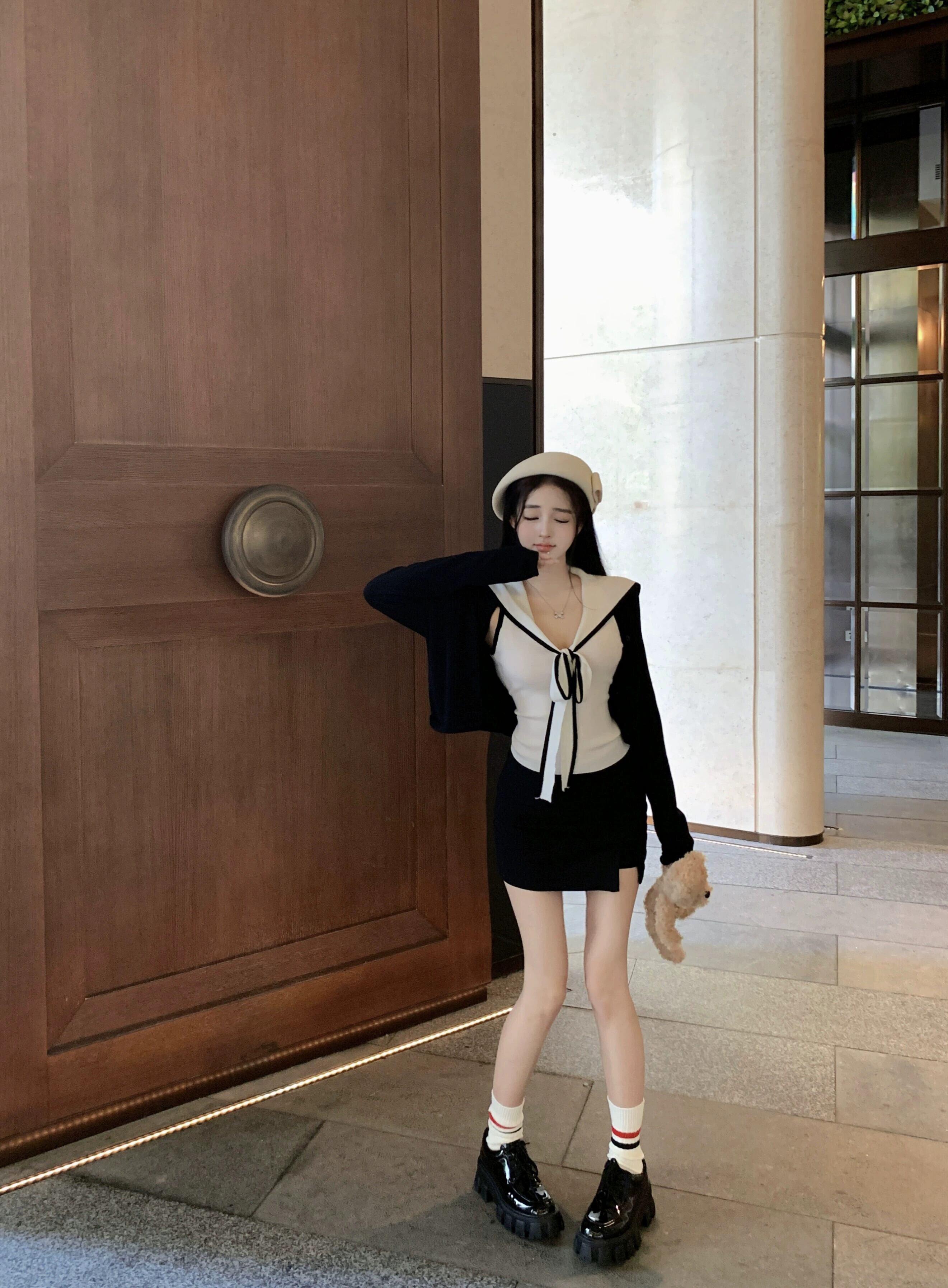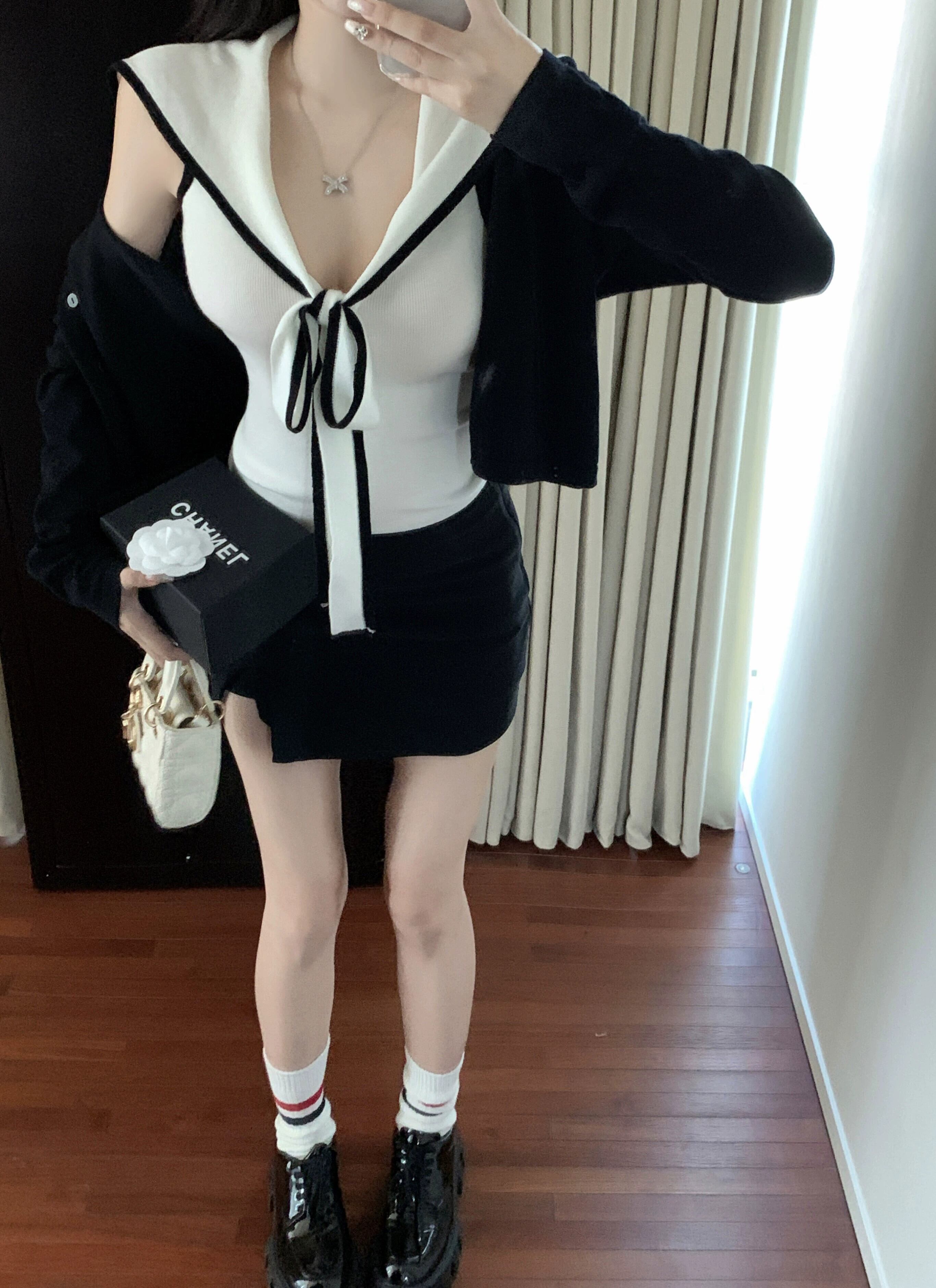 スタイルニットセータークロップトップツーピース春甘くてスパイシーなスカートスーツハイウエストスカート女性 大人ガーリー スウィート キュート カジュアル スプリング 春物 nana35104250299 | modepoisson