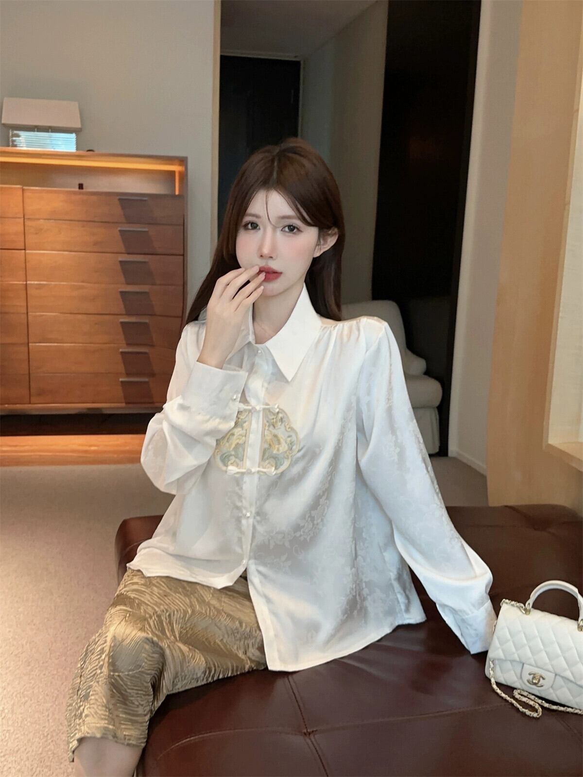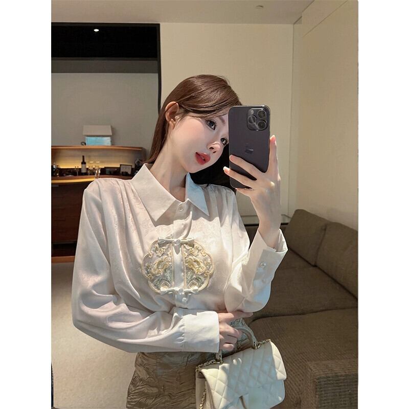 中国風の長袖シャツ春の女性の 2024 新しいファッションスーツハイウエスト痩身ハーフスカート 2 点セット ハイウェスト ロング スプリング 春物 nana20972302539 | modepoisson