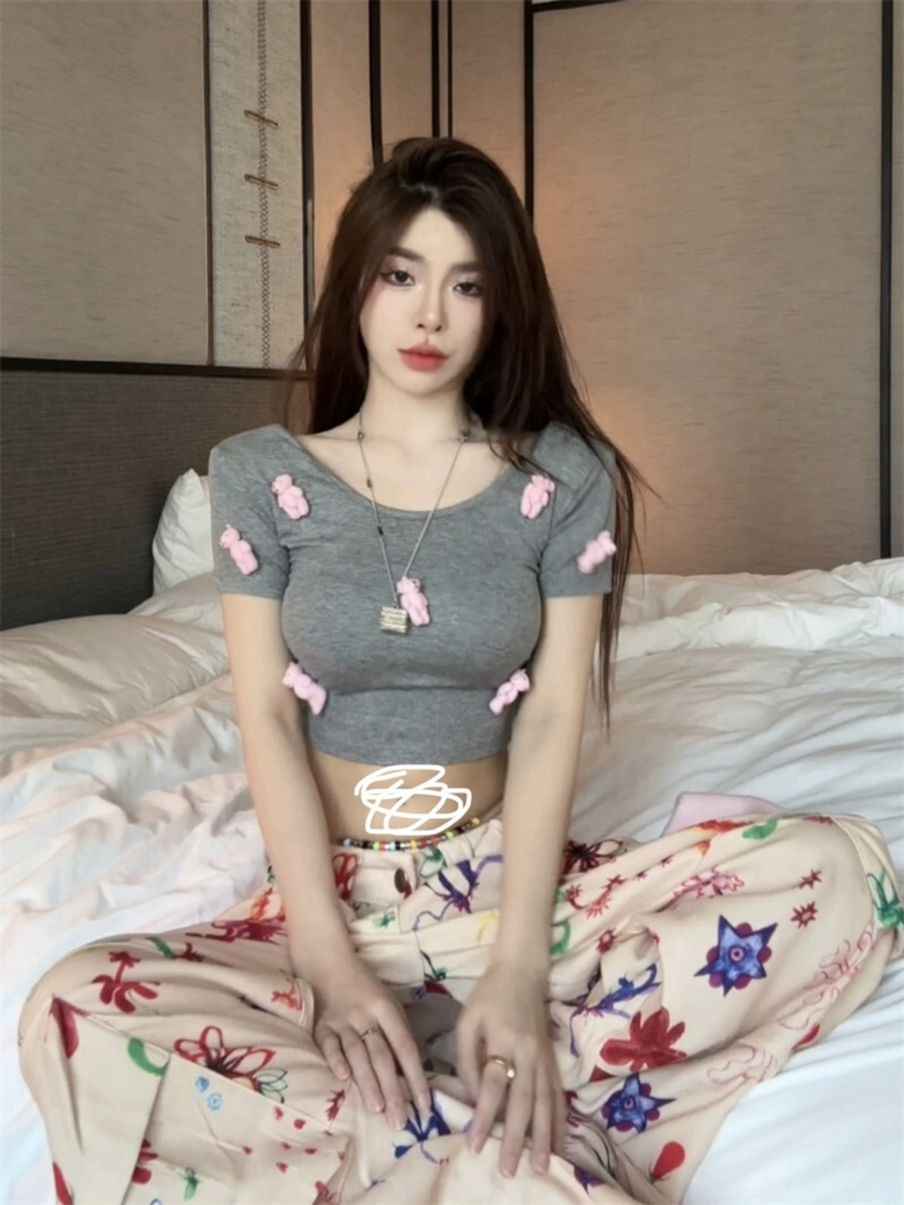 アメリカンスイートネクタイクマ半袖 tシャツ女性の夏の新デザインニッチ痩身底ショートトップ 大人ガーリー スウィート キュート カジュアル サマー 夏物 nana31385446151 | modepoisson