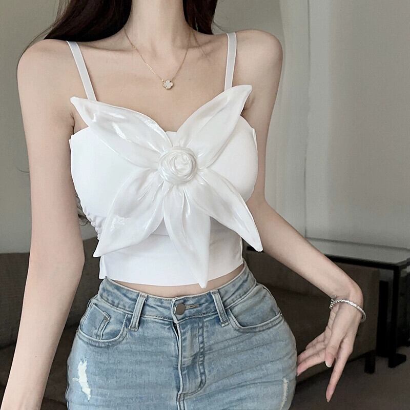 2024 新しい夏スタイルのハイエンドストラップレスチューブトップ女性立体的な花のデザイン胸パッドワンピーストップ サマー 夏物 フラワーデザイン nana63654181313 | modepoisson