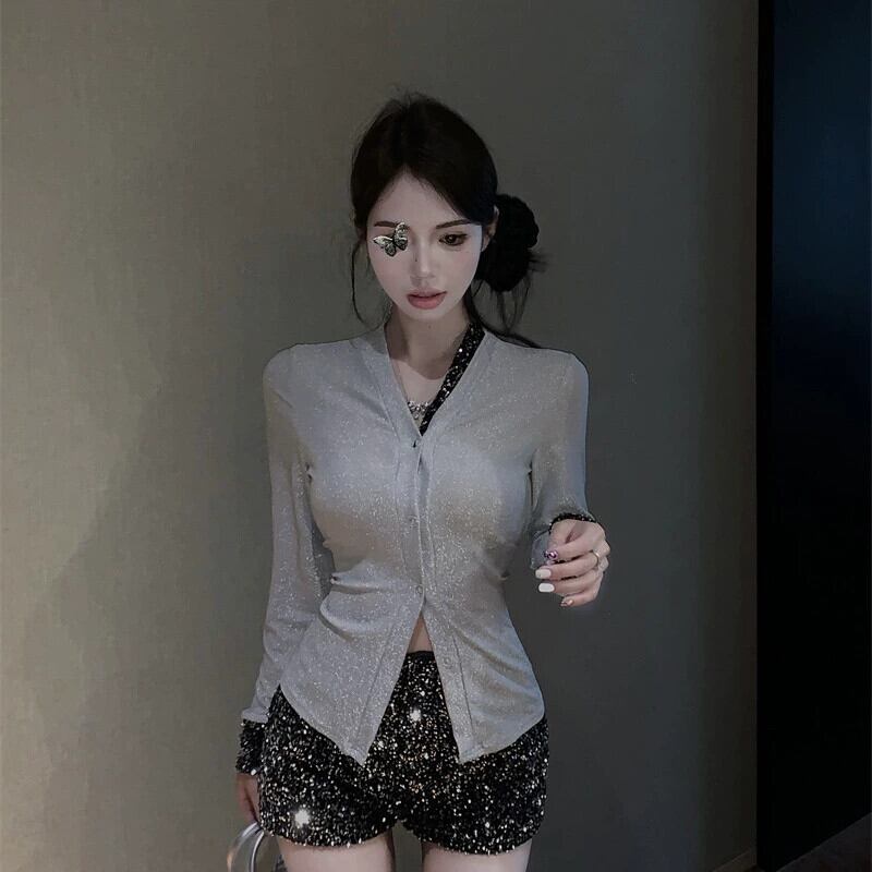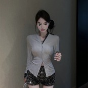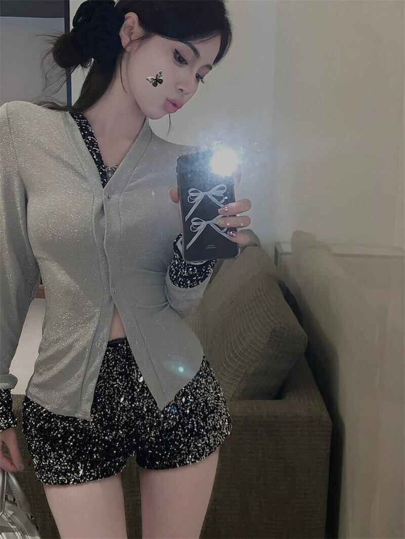 アメリカのおしとやかな気質ニットカーディガントップショーツ2024春の新ファッションスーツ痩身ツーピースセット女性 スプリング 春物 ブルマー nana95769827448 | modepoisson