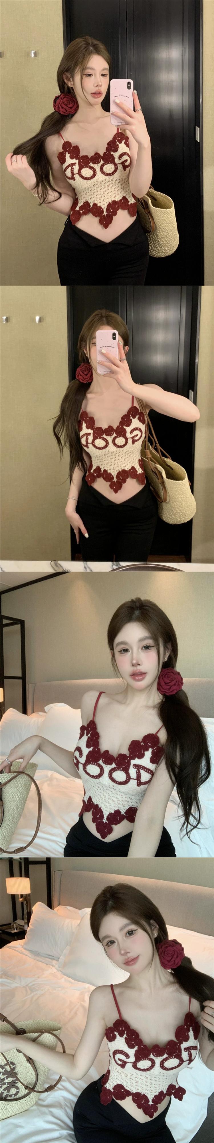 アメリカのセクシーなキャミソール女性の夏の新しい甘くてスパイシーなスタイル中空痩身ノースリーブショートアウタートップ 大人ガーリー スウィート キュート カジュアル サマー 夏物 nana98593887921 | modepoisson