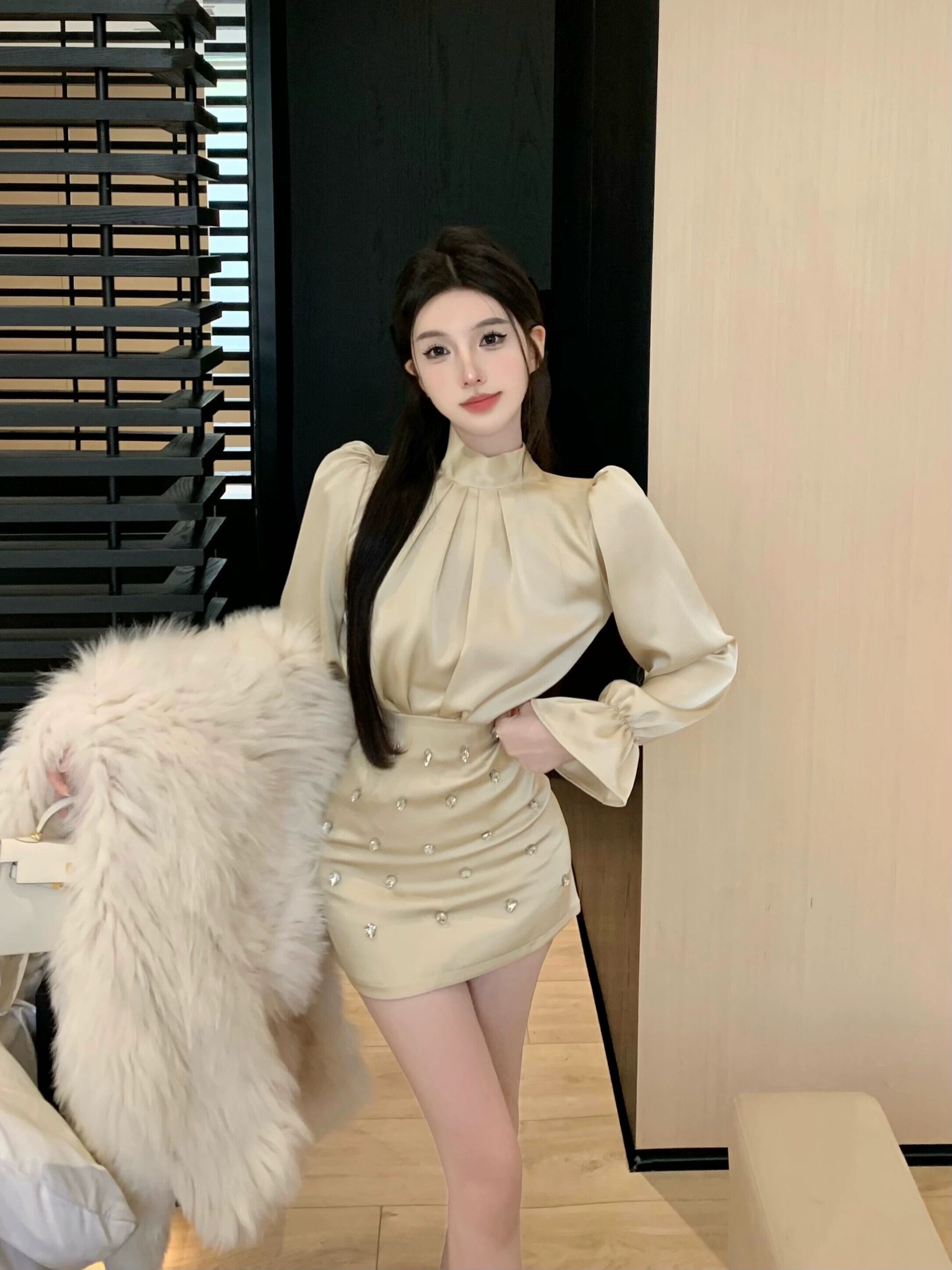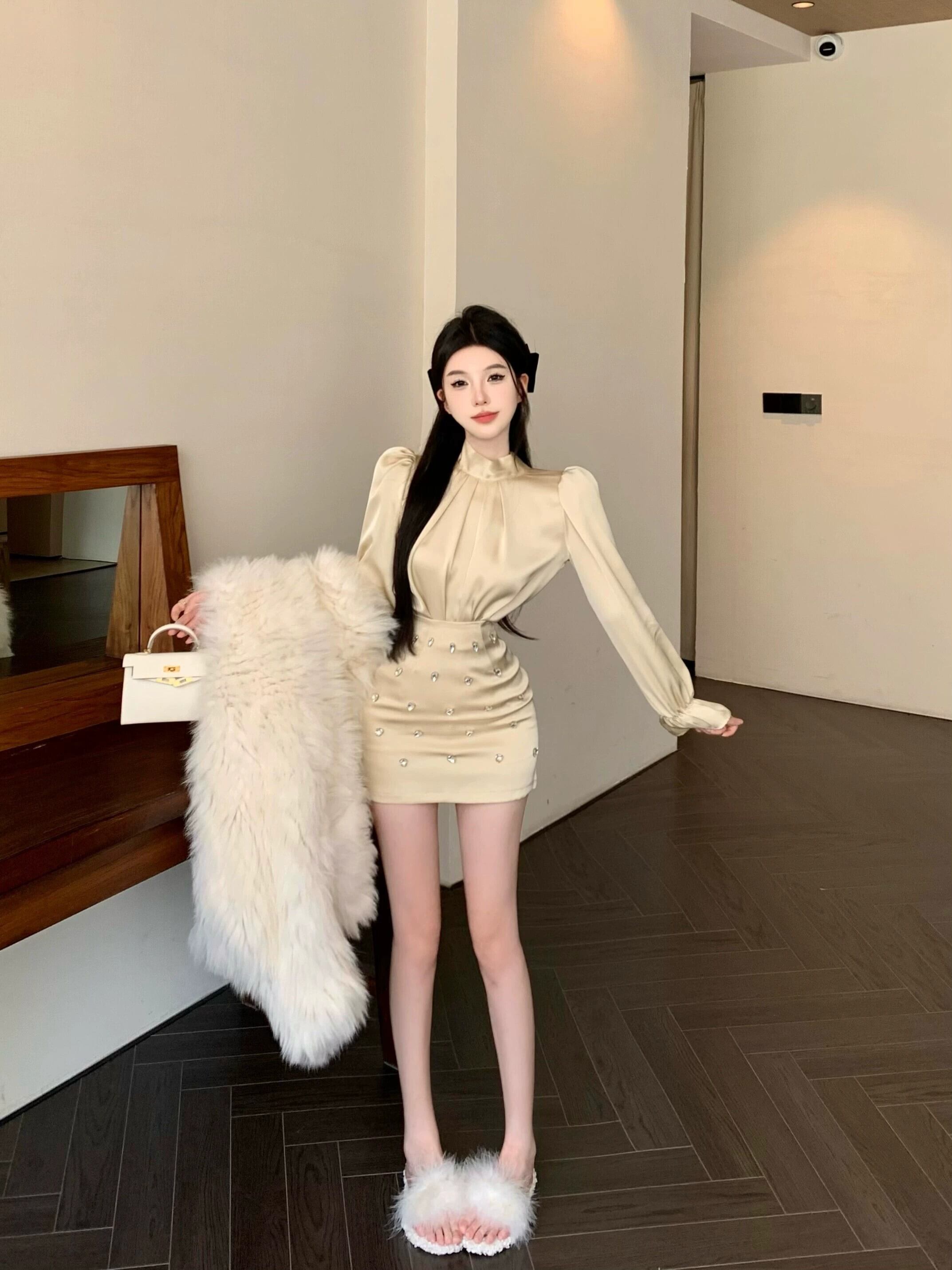 色:アプリコットシャツ,黒いシャツ,アプリコットスカート,黒スカート
