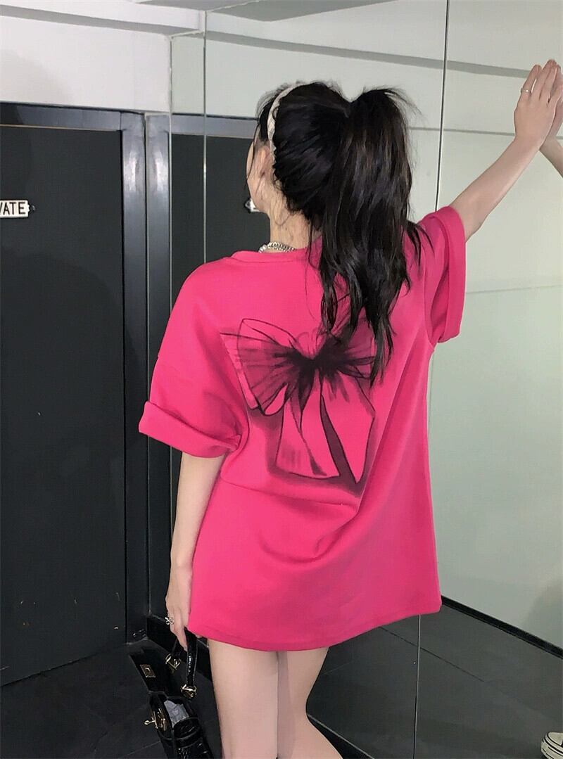 バタフライレタープリント半袖Tシャツレディース夏アメリカンルーズデザインニッチカジュアルミドル丈トップス サマー 夏物 nana11779308359