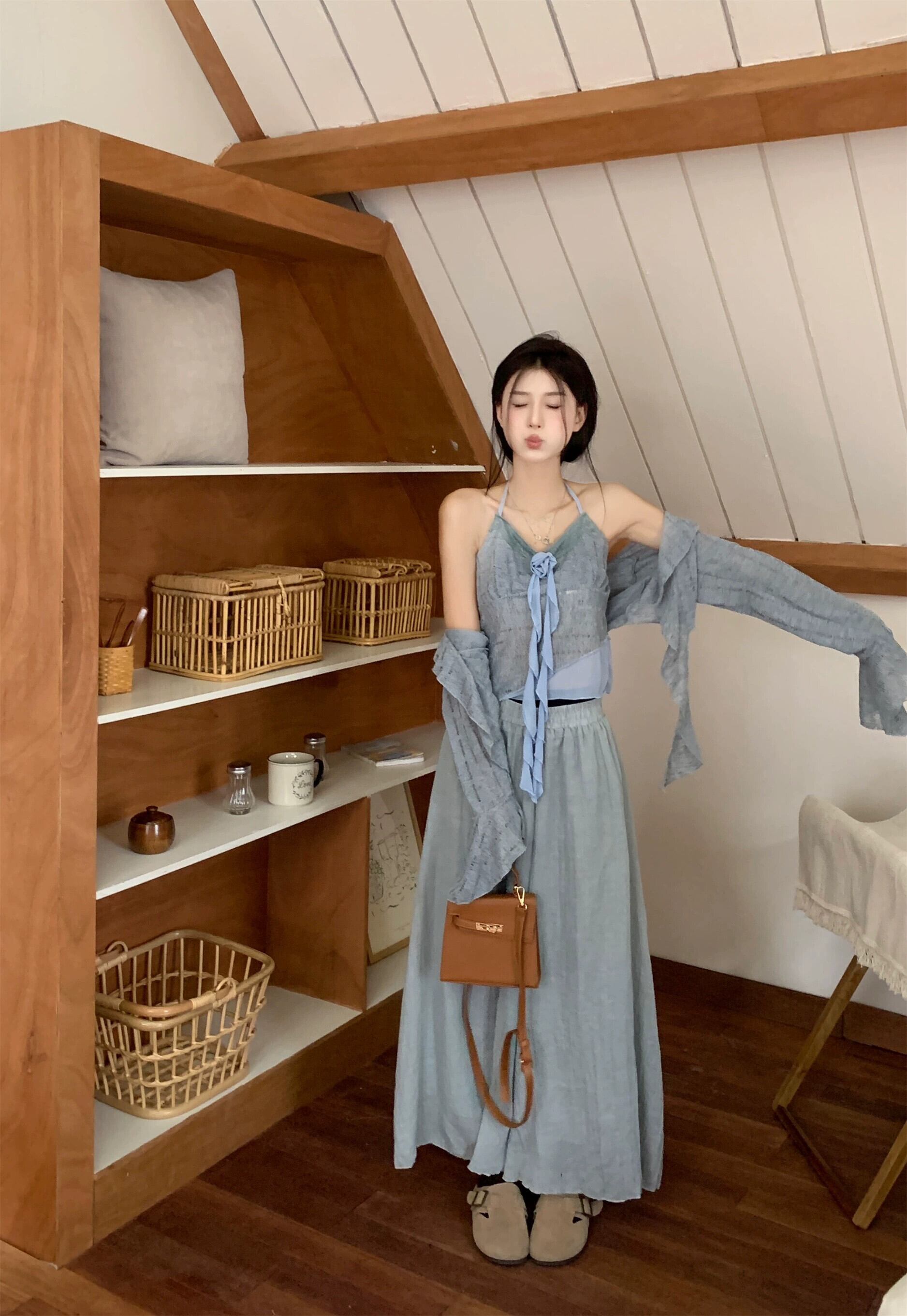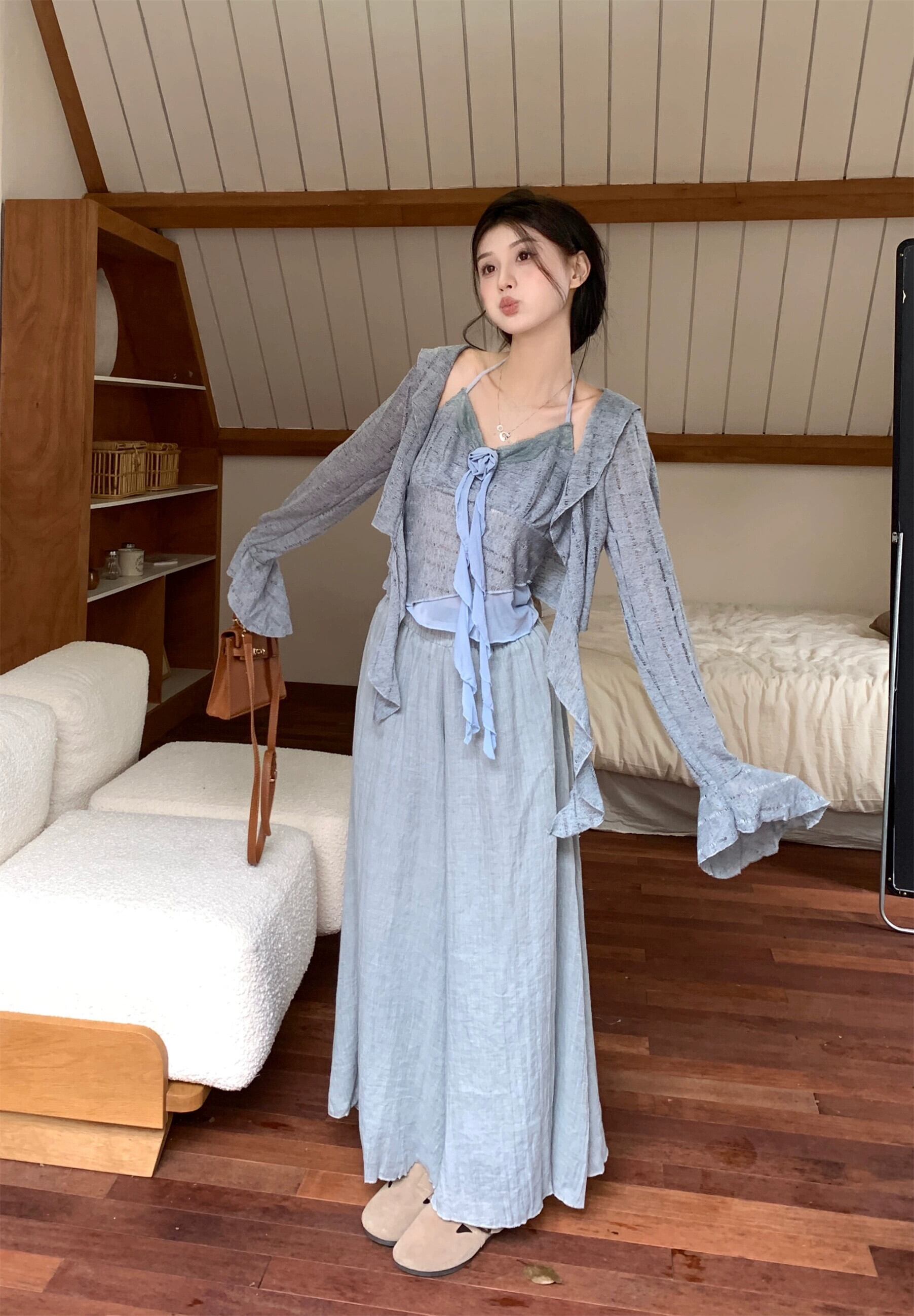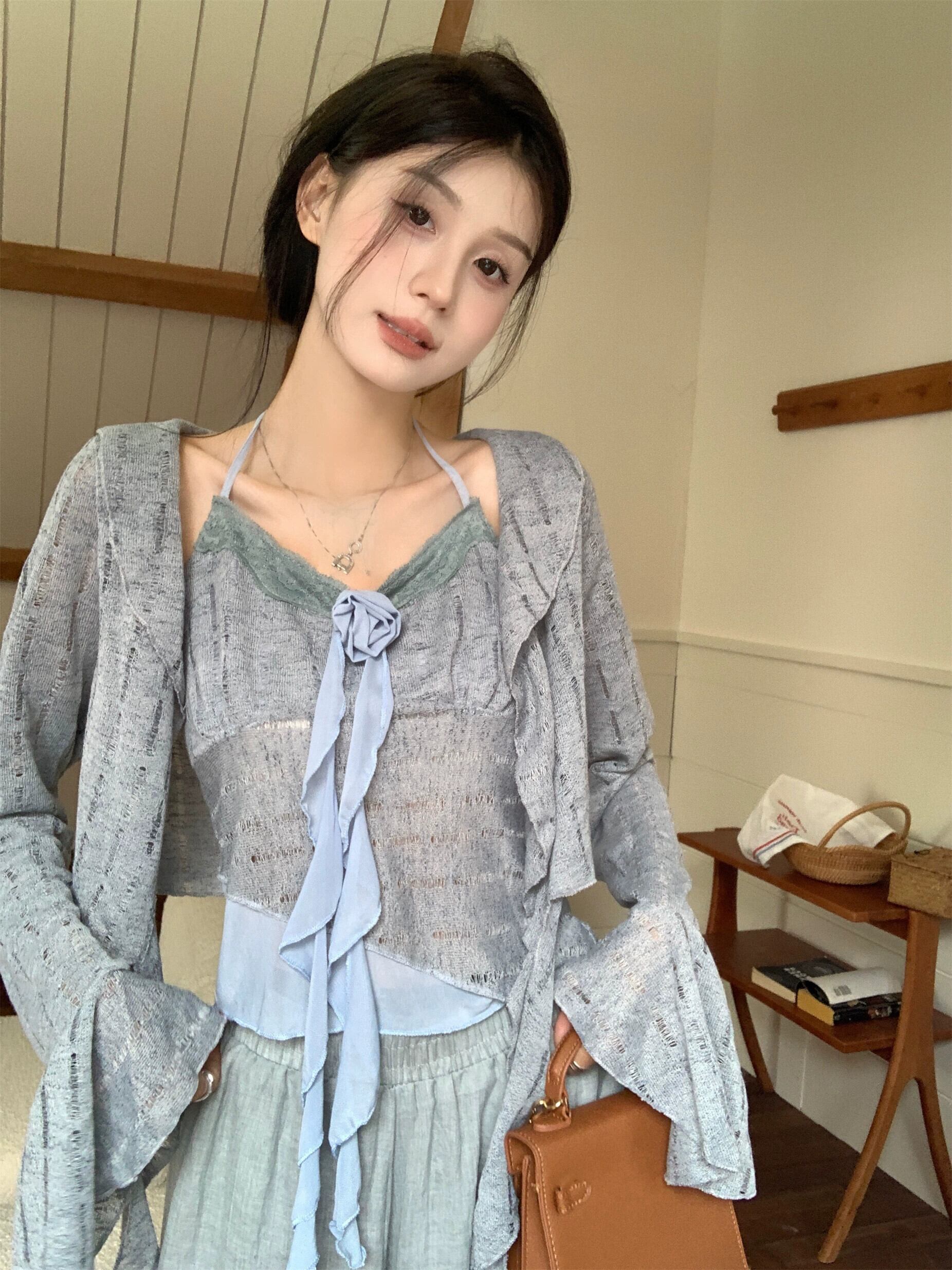 ユニークなトップス、超格好良いスーツ、春の新作中国風ネクタイホルターネックニットキャミソールカーディガン2点セットレディース スプリング 春物 nana36269484650 | modepoisson